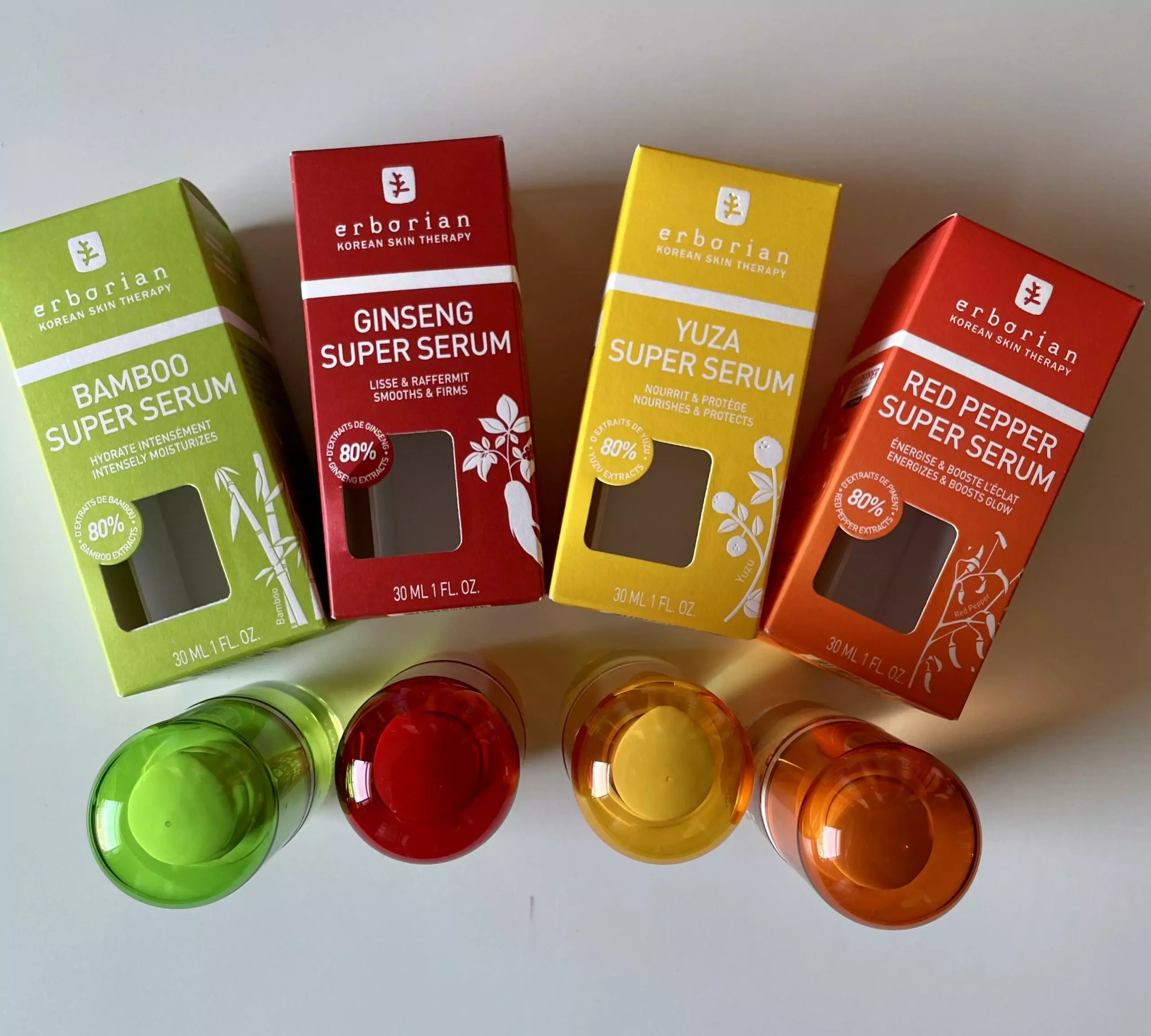 This post is sponsored by Erborian. One of my all-time favourite beauty brands. I’ve waxed lyrical on many an occasion about their CC and BB creams and I will continue to recommend them to anyone who will listen, especially my other ladies-of-a-certain-age who can’t be doing with a thick foundation anymore. BUT this time I’m here to let you know a bit about the latest Erborian launch and their new Super Serum range. Oh, and before we get into it, I should tell you that the code KATE20 will still get you 20% off all full-price, full-size Erborian items on the SPACE NK website, so do use that if you fancy trying any of these.
