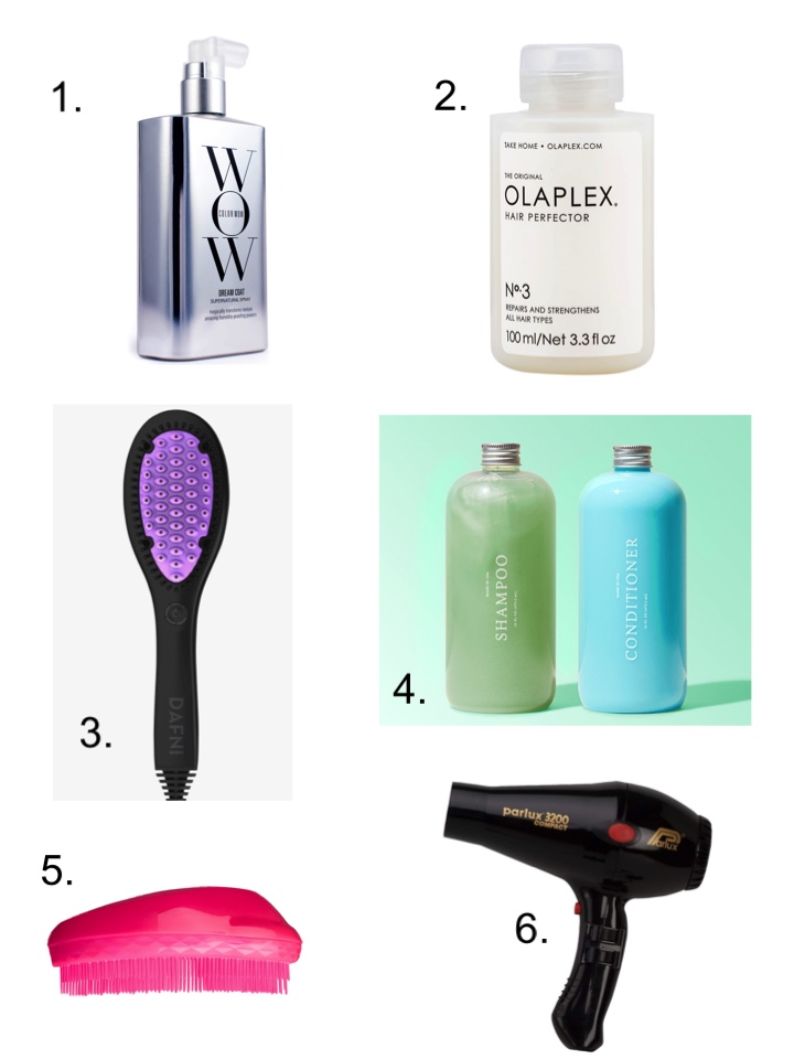 For Straightening hair, I prefer the Dafni Heated Hairbrush. You just rough dry and then brush your hair with this. so easy and you get a more natural look rather than the poker straight look of GHDs. I ALWAYS use the Color Wow dream coat before styling, I don’t know what’s in it, but it the one of the only things I’ve found that totally tames the frizz. The other one that’s good for frizz, heat protection and styling is the Kerastase Blow Dry Lotion.