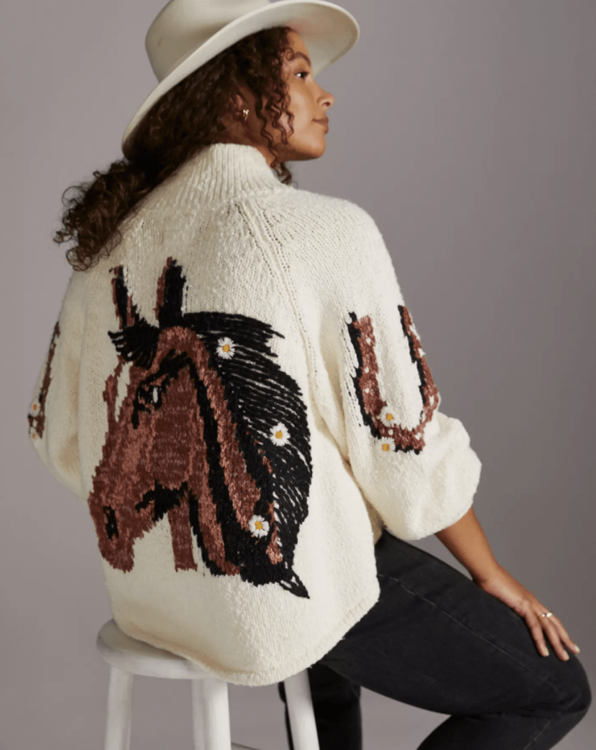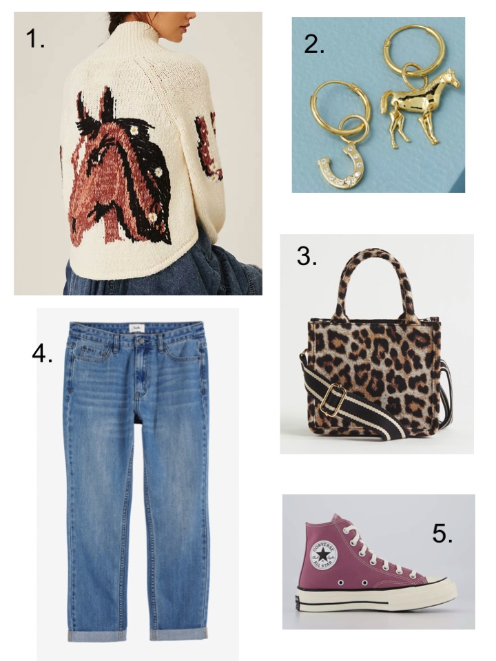 Popped into Anthropologie the other week. It’s always a very dangerous place for me. I have a cupboard full of monogrammed mugs to prove it. It’s the grown-up version of Urban Outfitters (same company) and I very rarely leave empty-handed. This horse cardigan called to me and, despite the fact I’m scared of horses and I don’t need any more cardis, it came home with me and I love it.