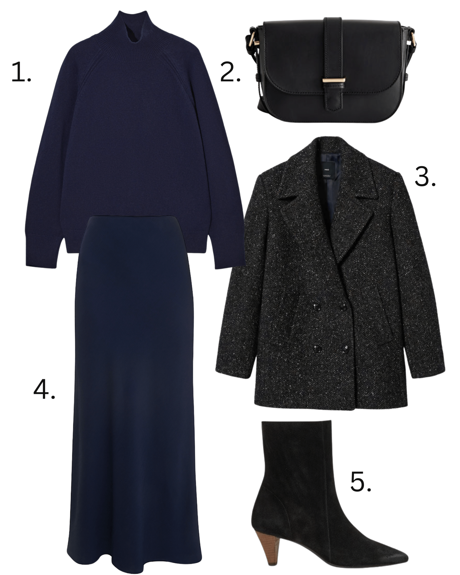 You may have noticed I don’t often feature skirts. That’s mainly because I don’t often wear them. Bar a corduroy mini skirt and a leather midi skirt, I don’t even own that many. I’m not sure what my aversion is. Perhaps it’s because it’s just easier to wear a dress, or that my waist is my problem area, so I find styling skirts a bit tricky. That said, I’m very taken with the comeback of the 90s satin skirt trend. I might try it out with an oversized polo neck jumper and boots this season. I do like the idea of this smart/casual outfit that would be cosy yet chic at the same time.