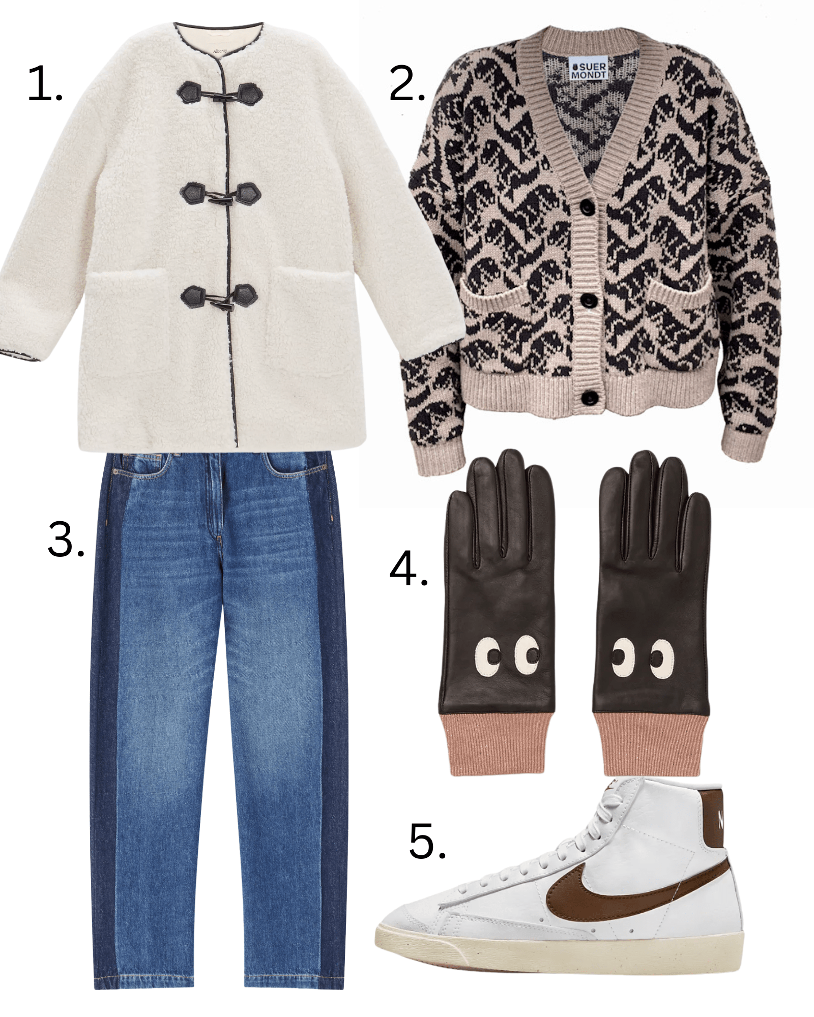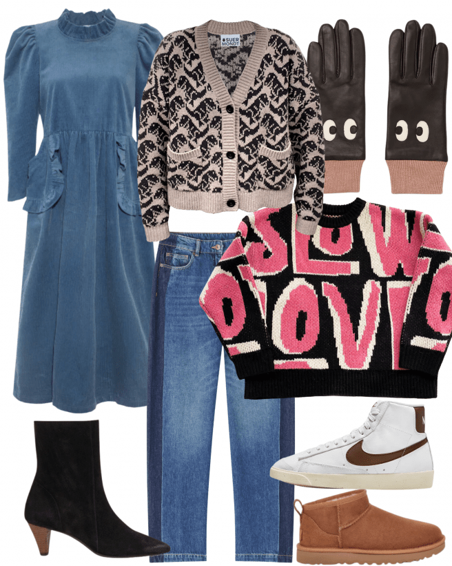 I saw this cute dinosaur cardigan on Instagram a few weeks ago and I just love it. It’s from a tiny brand called Suermondt knitwear and is made from recycled cashmere. It would work perfectly with the Albaray Borg coat that I saw at their press day last month. It’s SO SOFT in real life that I couldn’t stop stroking it. Admittedly, a white fluffy coat isn’t the most practical of items but since when has fashion needed to be wholly practical? Saying that, these Mabel Sheppard gloves are both practical and frivolous with their little side eyes.