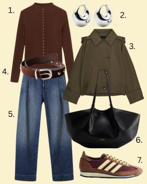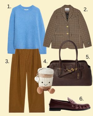 We covered quite a few blazers last week, but my favourite style for autumn is country casual checks. I’ll be wearing mine with corduroy and contrasting colours. I love the blue of this jumper worn with brown. Brown is very much the new black again for A/W 2025.