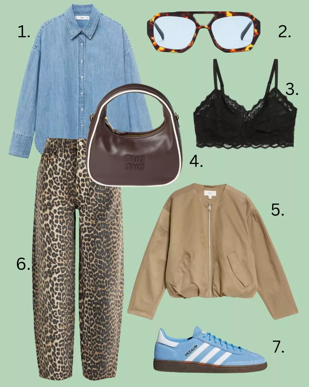 I wore my leopard jeans a lot last year, and I shall continue to do so this year. There’s now a whole load of animal-print-trousers options to choose from on the high street, and you can find a pair for every price point. Typically, the ones I like the look of the most are at the higher end of the scale, but there’s something about the Ganni leopard print that just works. For April, I will be wearing mine with a denim shirt and a bomber jacket. You may wonder why there is a random bra here. I just wanted to show it as I bought a couple of these bralets from M&S to wear under shirts, so there’s a nice bit of lace on show instead of a terribly ugly flesh-coloured sports bra – which has been my underwear of choice during the winter months.
