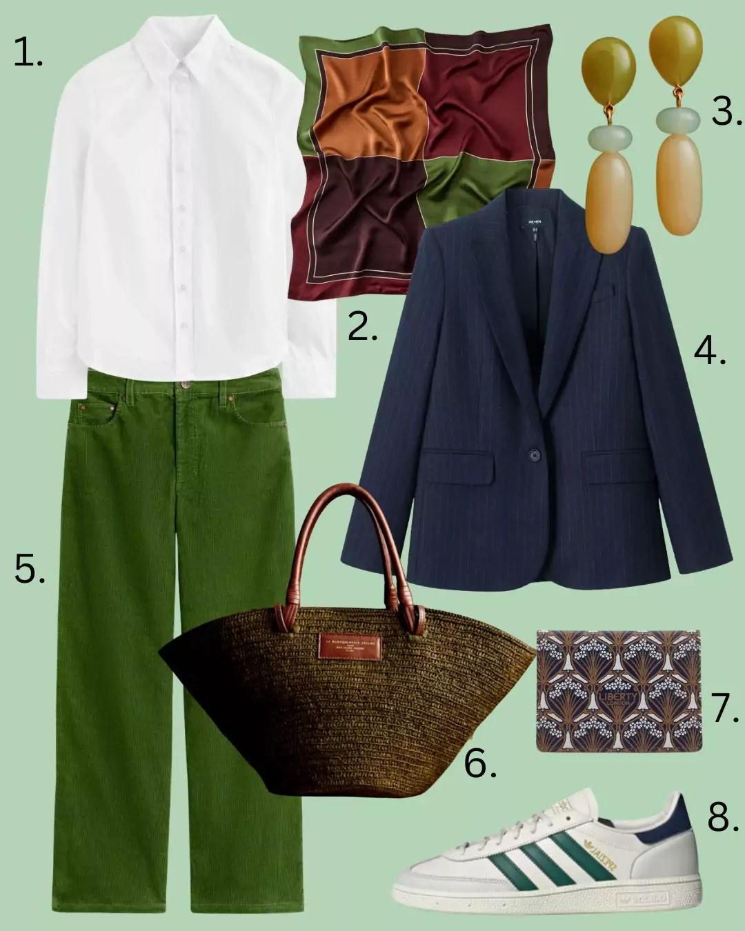 There’s a bit of a preppy vibe to this one, a look that I’m increasingly keen on as we get into real spring. As opposed to ‘pretend spring’ that can change to winter again over the course of one day. I love green with navy, and with the weather getting better (hopefully) we can shun our knitwear and wear our crisp, white shirts under our jackets instead.