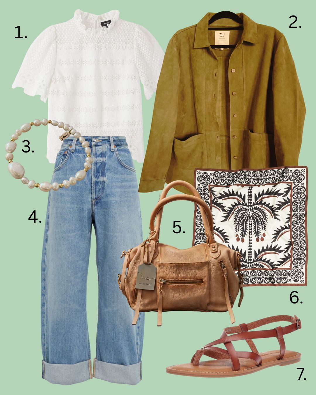 This has been a spring favourite of mine for almost as long as I can remember. Well, thats not quite true, as there was a time when my spring favourite was a ra-ra skirt and mismatched neon socks, but you catch my drift. Jeans and a nice white blouse is a very easy, failsafe option when you can’t think about what to wear. Add your bargain basement Amazon sandals (surely you have these by now) and some kind of shacket. My favourite is the Sézane Will jacket that comes in multiple colours and fabrics.