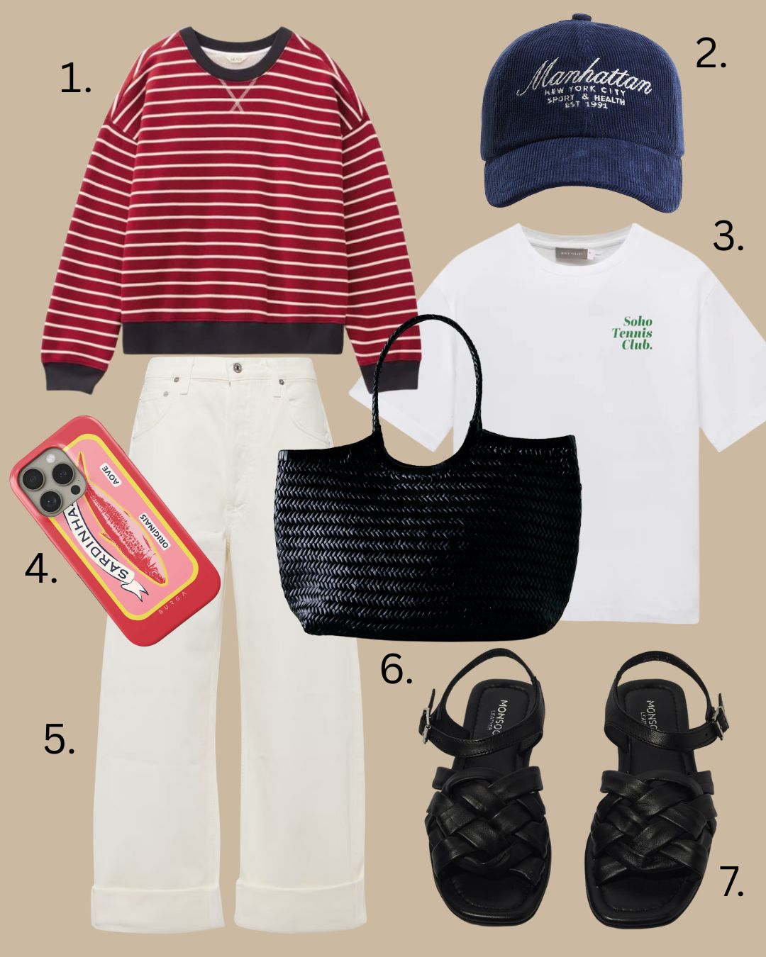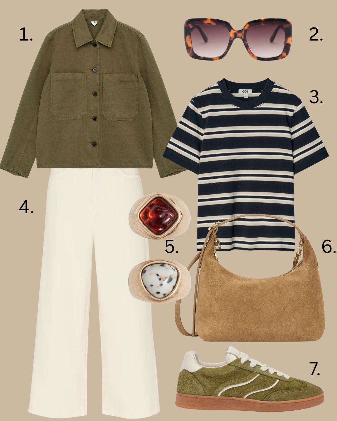 Because it’s always a classic combination and it works so well with your cream or white jeans. And I can’t sing the praises of the COS clean-cut T‑shirt enough. I now have it in three colours. It’s the perfect weight, length and fit. Also washes very well, which is very important with T‑shirts. I have some from a couple of other brands that have totally lost their shape after a few goes in the machine, which is no good at all.