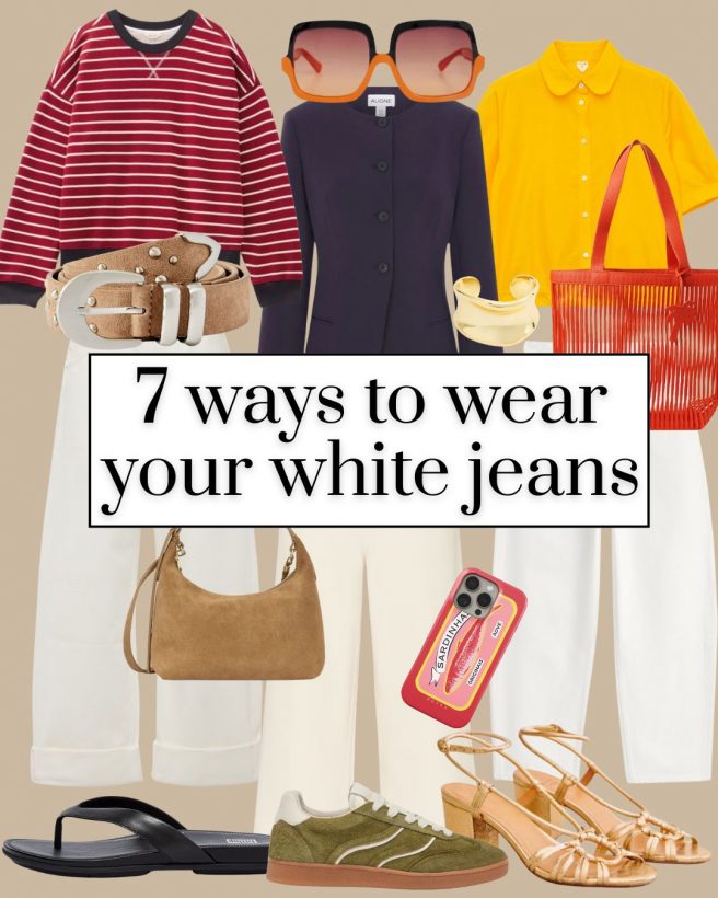 I digress, as we’re not here to talk about misogyny in years gone by but rather to look at some tip-top outfits featuring white jeans. If you don’t already have a pair, here are seven that have recently caught my eye along with some ideas on how to style them.