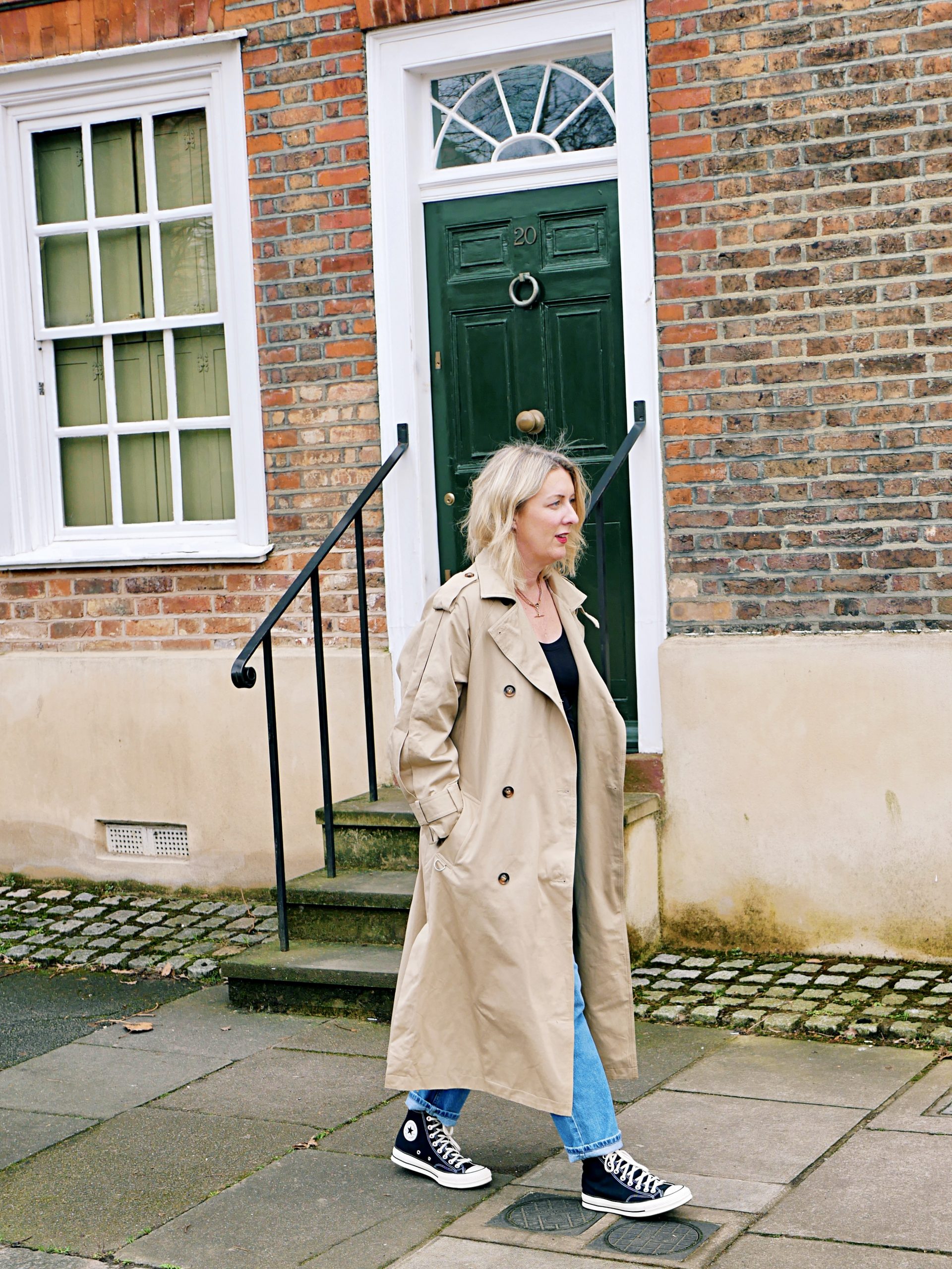 High-neck blouse? Platform sandals? Denim midi skirt? Trench coat? Is it 1976? No it isn’t. If it was we’d be able to feed a family of four for £4.60 a week and smoke at the cinema. But we can recreate a little bit of 70s style with this look. I’m kind of into it. I imagine strutting down the King’s Road in the sunshine, with my hair blowing in the wind. In reality I would have to get an Uber to that imaginary brunch as I still can’t walk very far in heels. Although to be fair, these Esska platforms are actually quite easy to walk in. The heel height is manageable and the platform evens out the pressure.