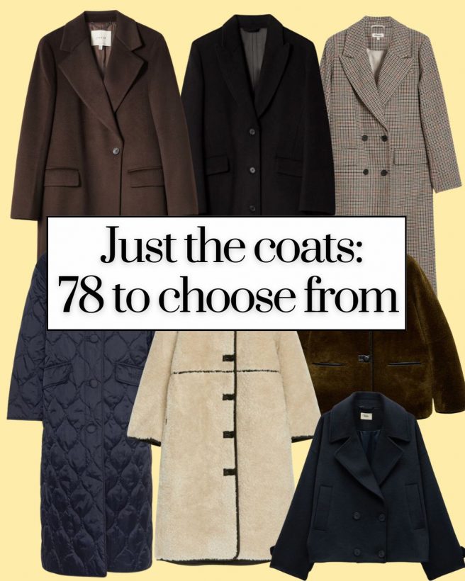 This is just a quick one to complement last weeks coat post. All the coats from that article, plus a few extras, without any of the other outfit components. For anyone who’s specifically looking for a winter cover-up, I’ve picked out 78 of the ones I like the look of to save you time on the internet.