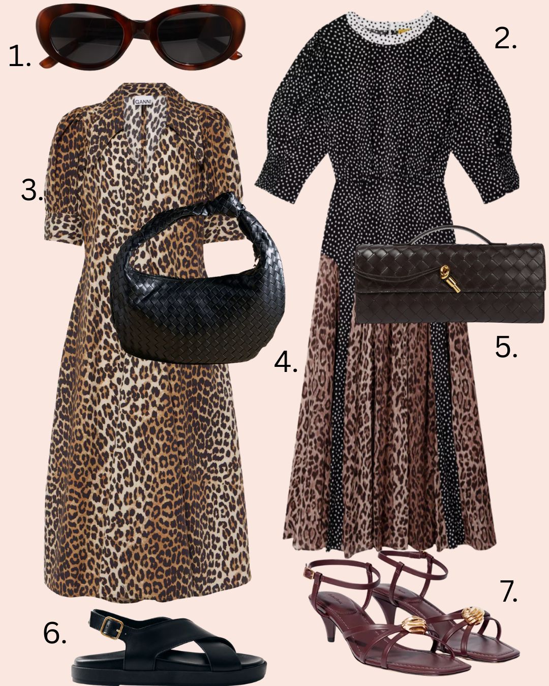 - Rixo Leopard and polka dot midi dress