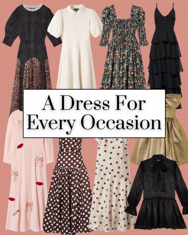 There are TEN different dress options for you this week, so I really hope I have covered all possible bases. If it’s a nice dress you’re after, you should find one here. Just to remind you, as ever, there are other options at all price points under the main outfit collages.