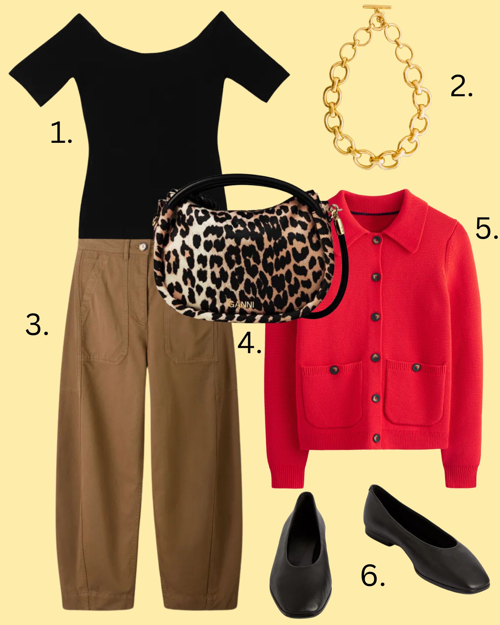 If you don’t feel like sheathing yourself in this print but you quite fancy the little lift it can give you, then a leopard-print bag could be the perfect accessory for you. At this point, I am not going to apologise for the overabundance of Ganni in this post. They went a bit off-the-boil last year, but they have always done leopard print very well. In fact, I’d say it’s their best calling card. Kudos to you (me) if you never got rid of your dresses from circa 2018. I had a feeling they would have another moment. Shout out to these M&S ballet flats, by the way. I bought them the other week and I can confirm they are very comfortable and look way more expensive than they are. I recommend.