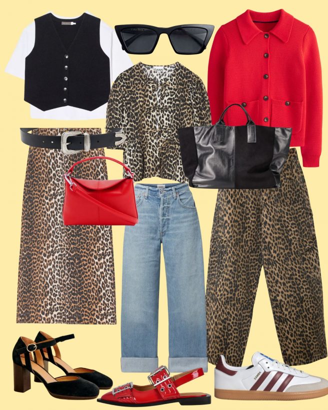Now then, I know that leopard print never really went away and, overall, it’s pretty timeless, but last year it fell slightly down the pecking order. I don’t recall wearing much of it in 2023, but I am all over it this season. I mainly blame Instagram for feeding me loads of photos of cool girls wearing it. But you don’t have to be a twenty-something fashionista to get your leopard print on, and forget the Bet Lynch / Kenny Everett-as-Rod-Stewart connotations too as it’s not about being ‘sexy’ or ‘brazen’. In fact, the way we wear leopard print these days is much more casual. It’s not short skirts and stilettos, it’s more loose fits and comfy trainers.