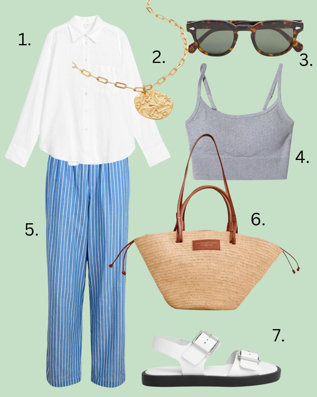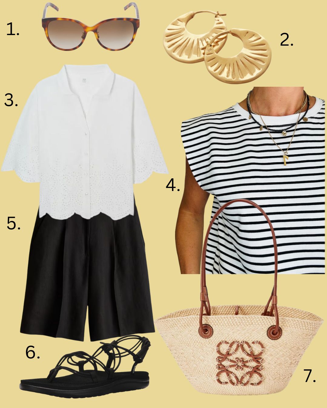 - 3 pairs of shorts (denim, linen, long)