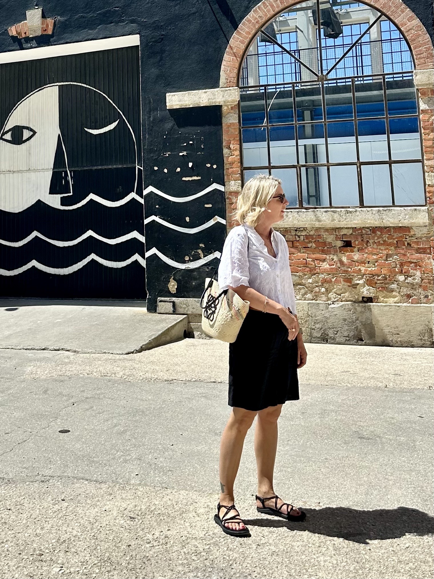 There are a lot of rooftop bars in Lisbon, the one right next to our hotel called Seen was the most bougie, but the cocktail prices were very steep, so we plumped for the Atico rooftop bar on top of the NH Hotel over the road as their drinks were half the price and the views were excellent. I got to wear my shimmery top from 46 Stitch that a lots of you loved, I don’t have these gold sandals, I’m using artistic license here, but I do have them in cream and in black and they are SO comfortable. you can wear them all day and all night.