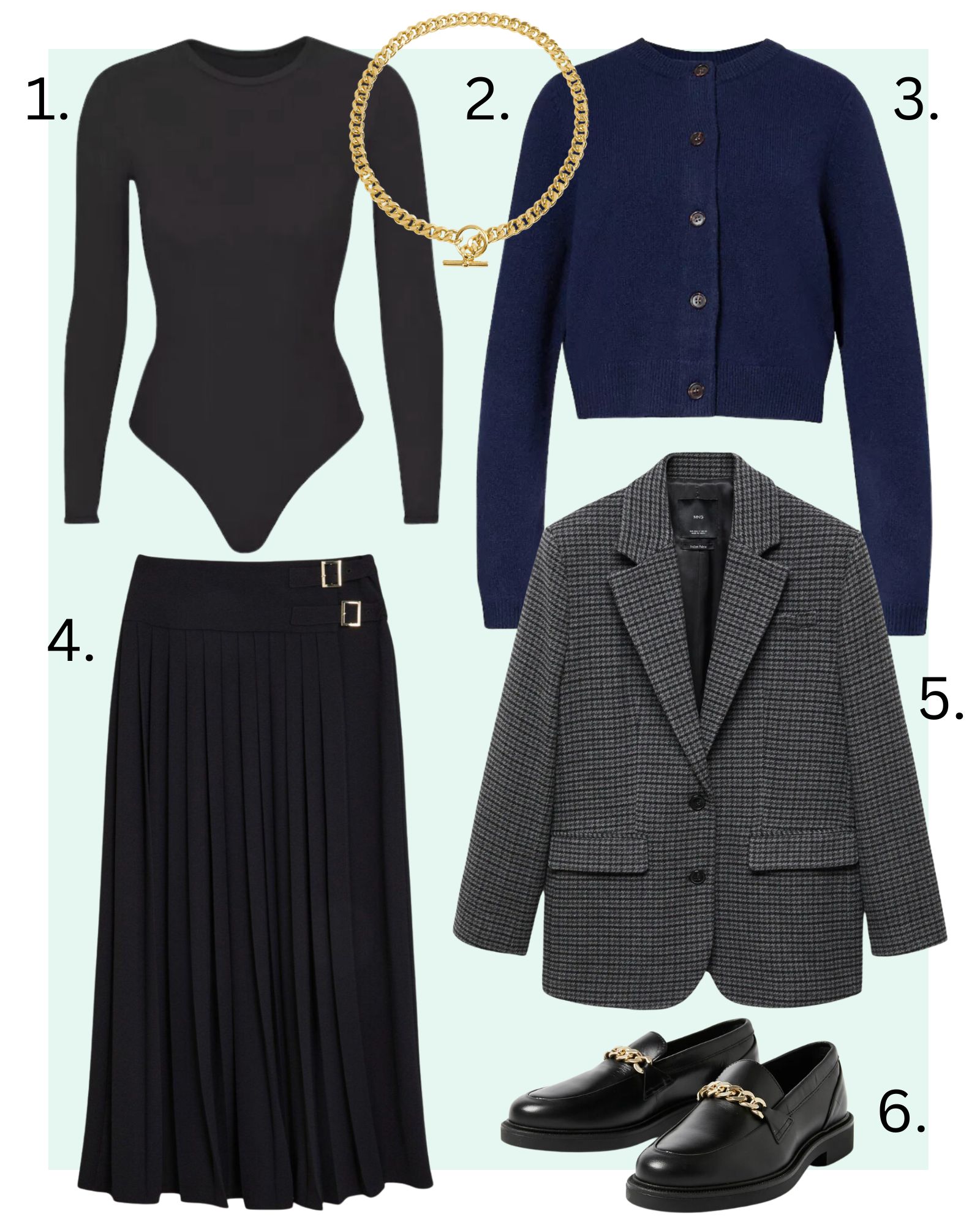 Reiterating the point that no, you are not too old for a mini skirt. Plus it’s now cold enough for a high denier pair of tights, and we all know how good they are at hiding any leg hang-ups you might have. I stand by Falke being the maker of the best tights money can buy. Not found any better yet. In fact, I tried a few others last winter but they just weren’t as robust. We ladies of a certain age demand robust tights. I love the sixties vibe of these cute shoes from Sézane which would work great with those opaque tights.