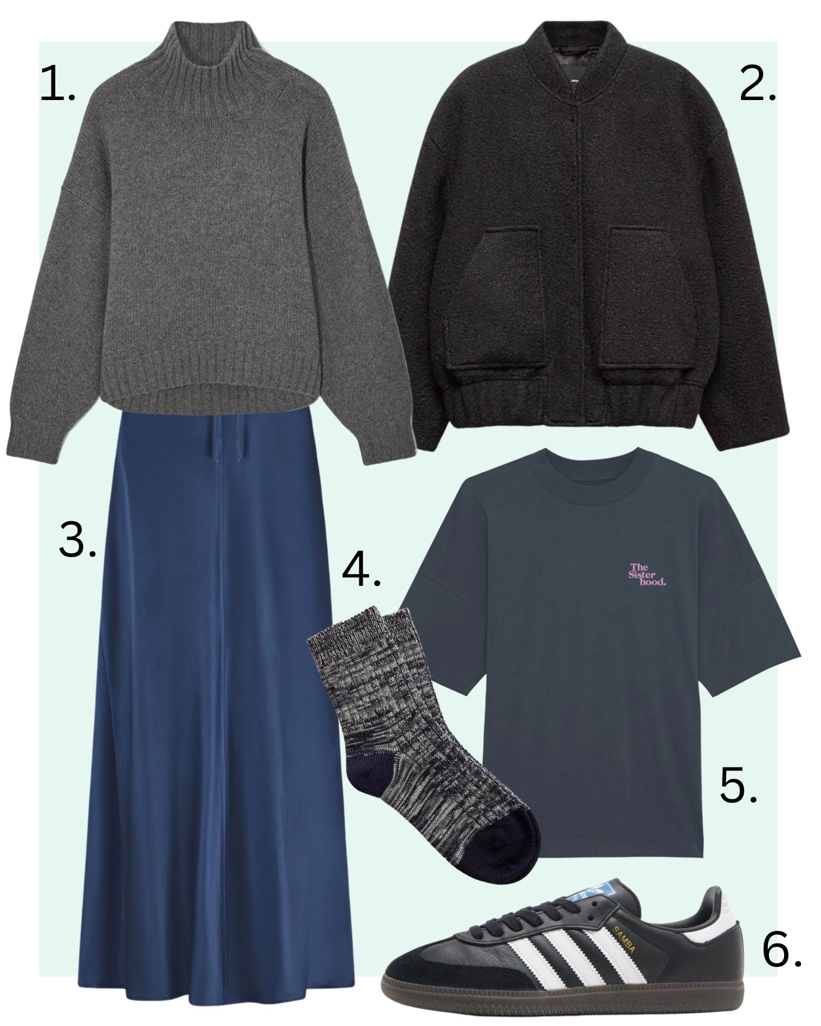 I took delivery of this silk skirt by the small, female-owned brand The Summer Edit this week. It’s even more beautiful in real life, plus it has an elasticated waist for extra points on the comfort-factor scale. I immediately started outfit planning. I will either wear with my trainers and Rock + Ruby wool socks (yes, it’s ok to wear socks with trainers under skirts or dresses), or if it’s too cold for that, I will wear with secret leggings and Chelsea boots with one of my best chunky jumpers over the top. Also loving the new oversized T‑shirt range from another small female business Bob The Brand.