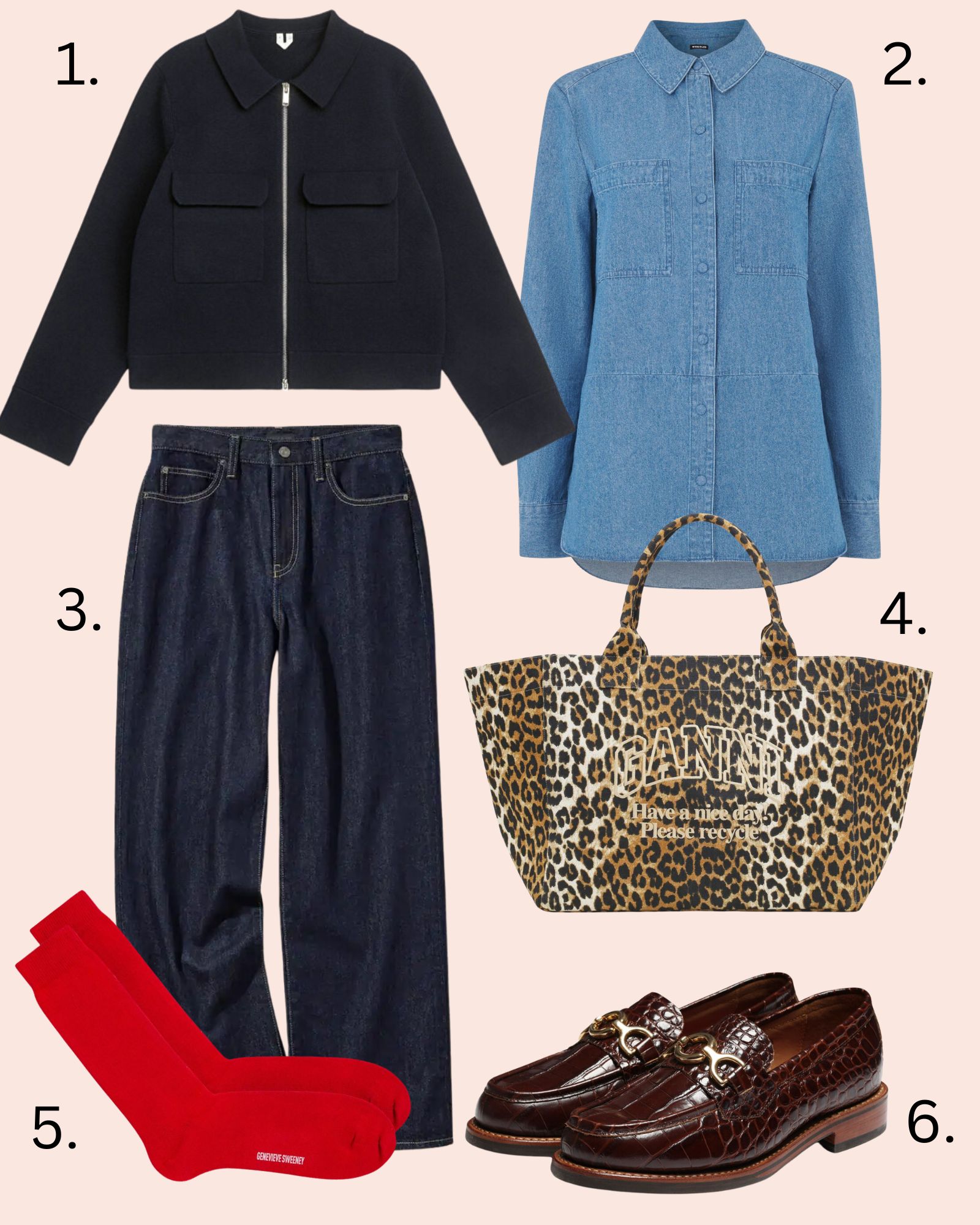 If you’re hesitant about red, start with the socks. You might not even see them until you sit down, but once you do, and people spot them, they will think ‘Hey, she’s calm, she’s cool, but underneath she’s a red rebel who deserves our respect’. Possibly. Add a leopard print bag for some outward pizzazz to match the inward rebellion. Also note that Genevieve Sweeney is my favourite maker of all socks. Her knee-highs are worth checking out – they don’t fall down.