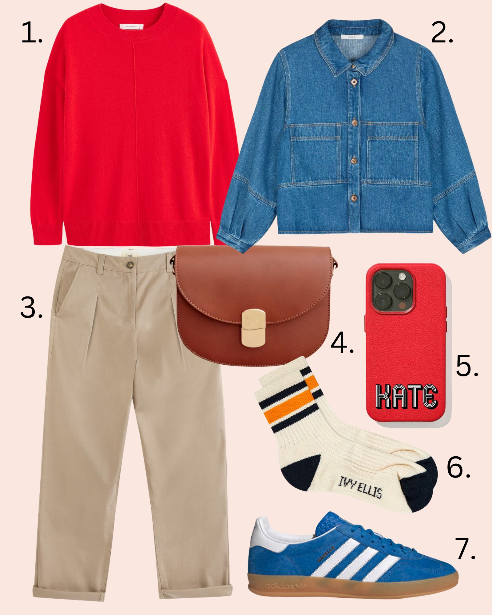 Red jumper, classic chinos and a denim jacket. It’s a winning formula all round in my book. I bought this Sessun jacket last year and it became my most worn spring/summer jacket. I did gatekeep it for quite a while, but I’m sharing now for all to see. It’s the perfect length, weight and fabric. Also good for layering (add another jacket on the top) at this time of year.