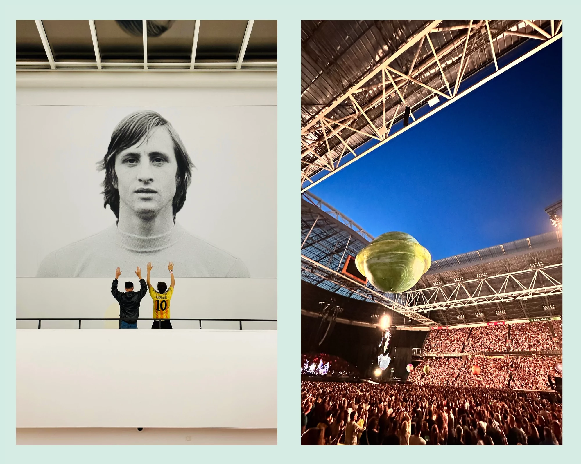 WHAT WE DID: The main impetus for this trip was to see Coldplay at the Johan Cruyff Arena. We love a football stadium and a big gig, and I’m lucky enough to still work with Coldplay after 10 years so I can bag a few guest-list tickets now and then. If you ever get a chance to see them live, I urge you to do so. It’s the most joyous experience. I don’t think I’ve ever seen my 16-year-old so animated.