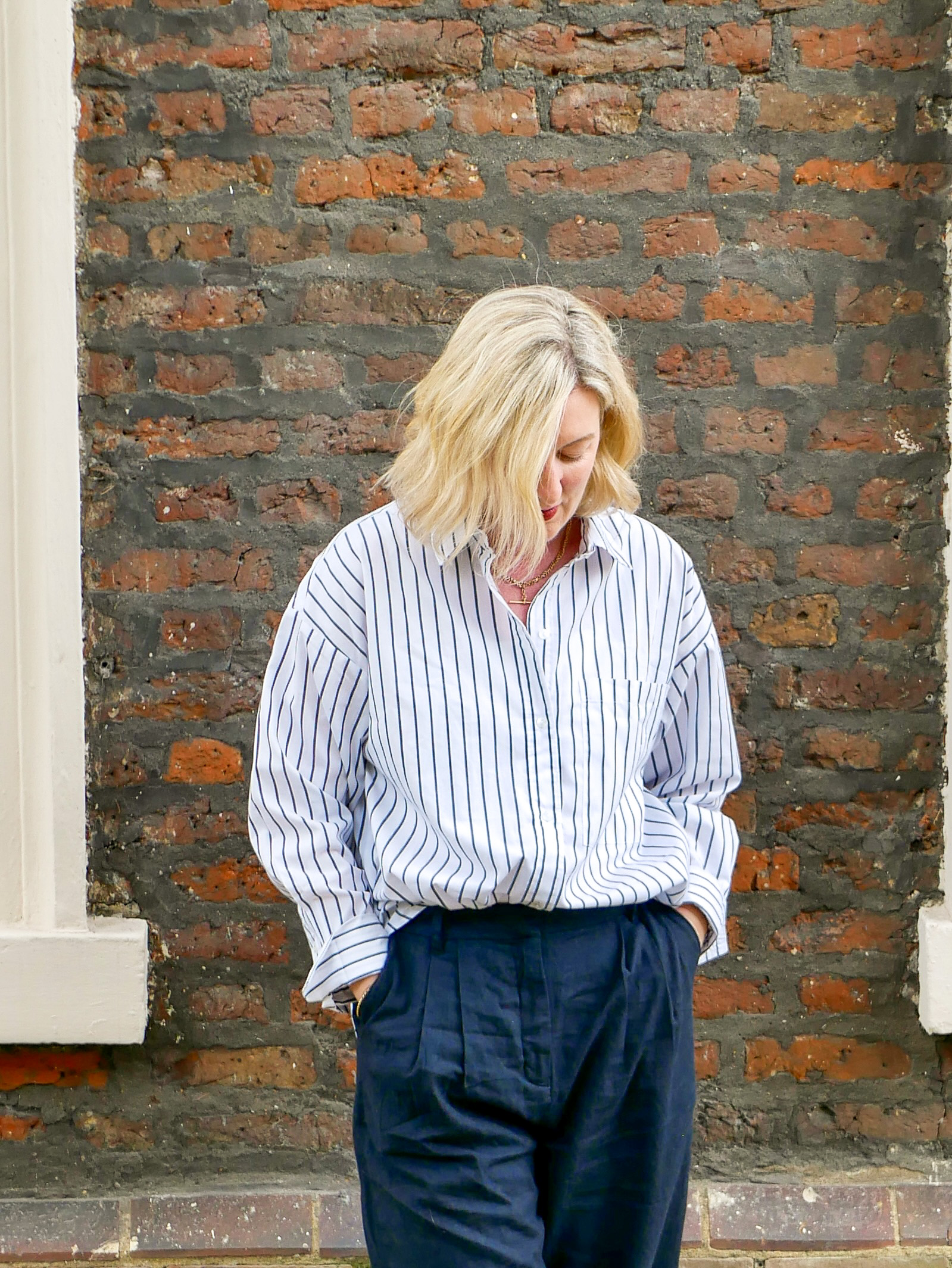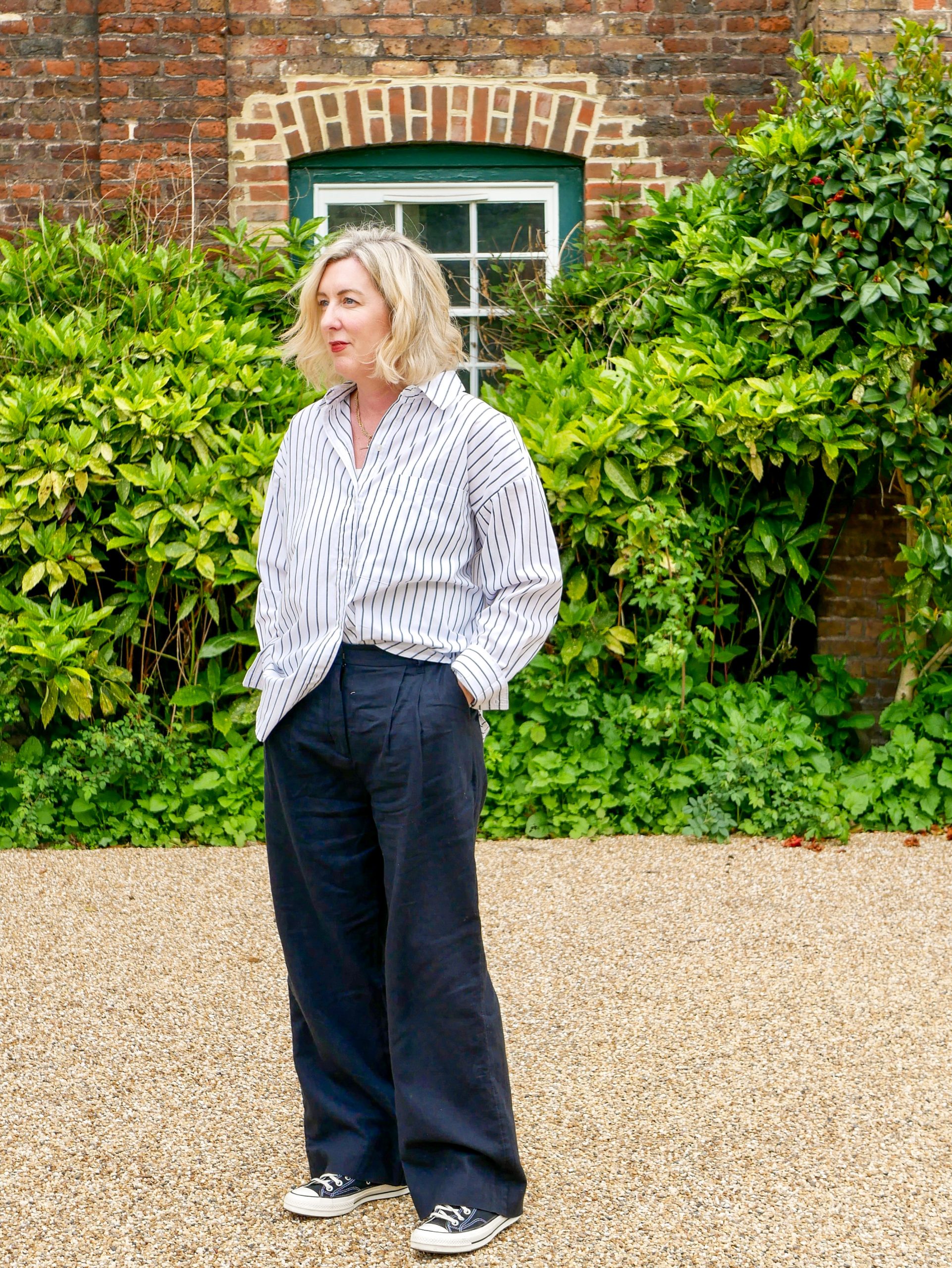 I’ve kept it simple with a pair of linen trousers. These ones are super light and comfortable and because they are a blend, they don’t seem to crease quite so easily. True to size, I’m wearing a 12 in the trousers and a medium in the oversized shirt, which I think will be a perfect as a beach cover-up and will also look great open over a vest and shorts.