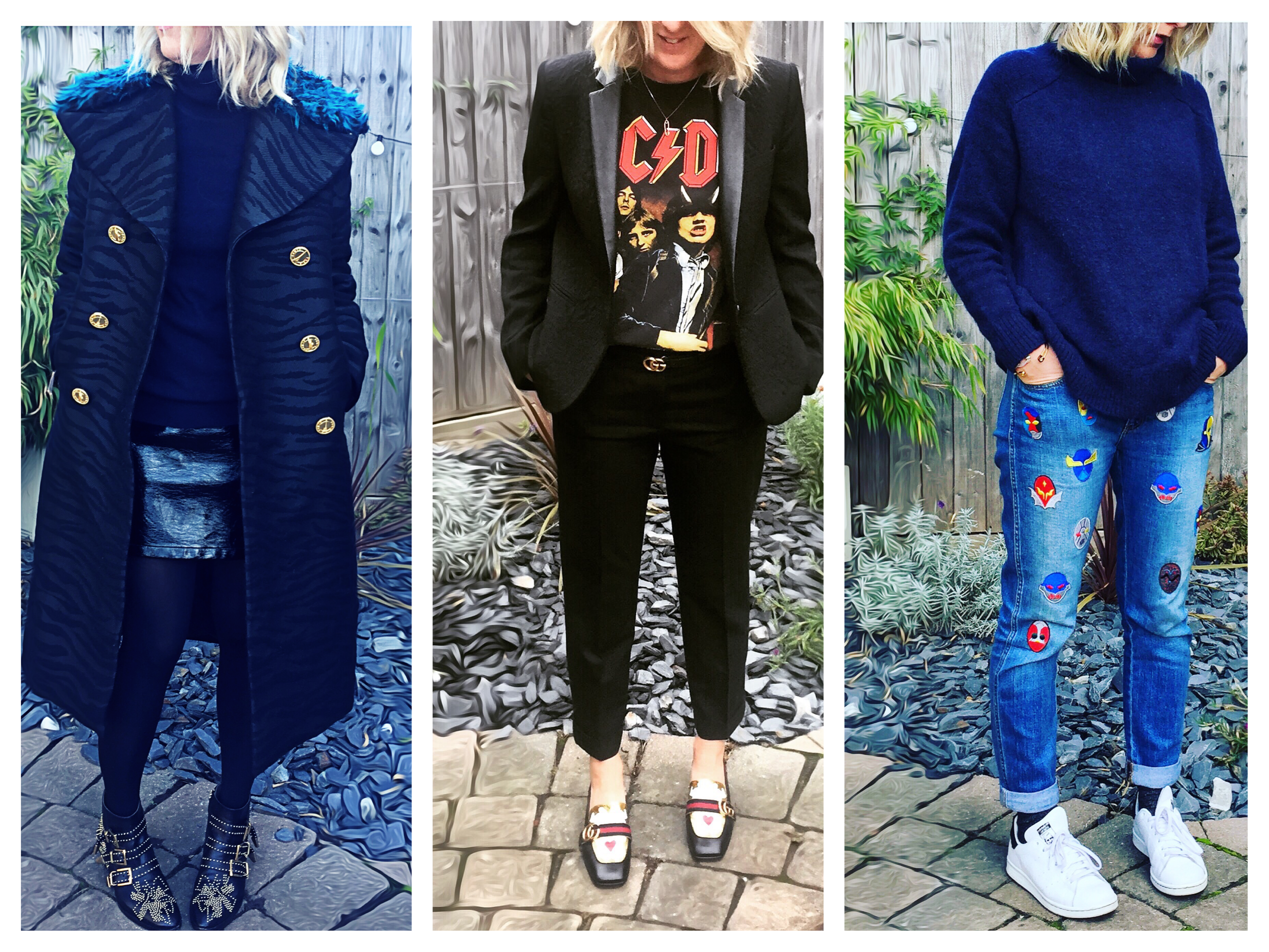 Or as our American friends call them ‘overalls’. I only STARTED wearing these when I got past 40, apart from a brief foray in the early 90’s rave days. I love dungarees so much I wrote a whole post about them. I’ve said before, maybe they are not for the office, although I have worn mine to office on more than one occasion, but If you dress them right you can get away with them at most places. If you are new to the dungaree game, maybe stick to black. Black is always good…