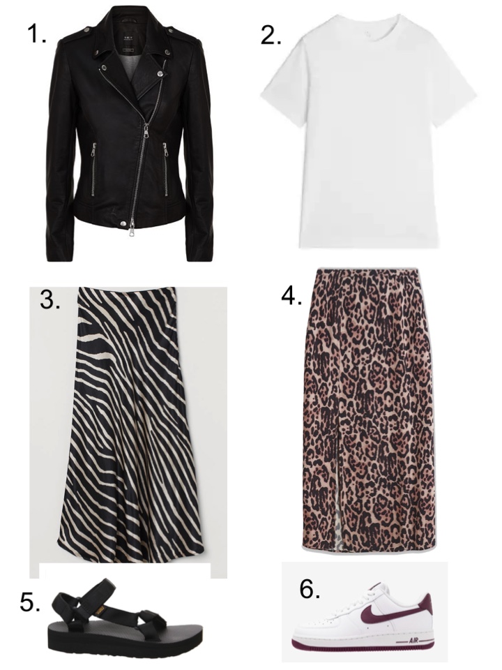 An animal print skirt is something you can wear with things already in your wardrobe. You should all have a perfect plain white T Shirt and maybe some of you also have the only Black Leather Biker Jacket you will ever need.  I would always dress it down with white trainers or Sturdy Sandals, but if you were on a fancy night night, you’d only need to add heels and couple of layered gold chain necklaces to this outfit and you’d be all set. I love layering necklaces right now, the only issue is the tangle. It’s inevitable unfortunately.
