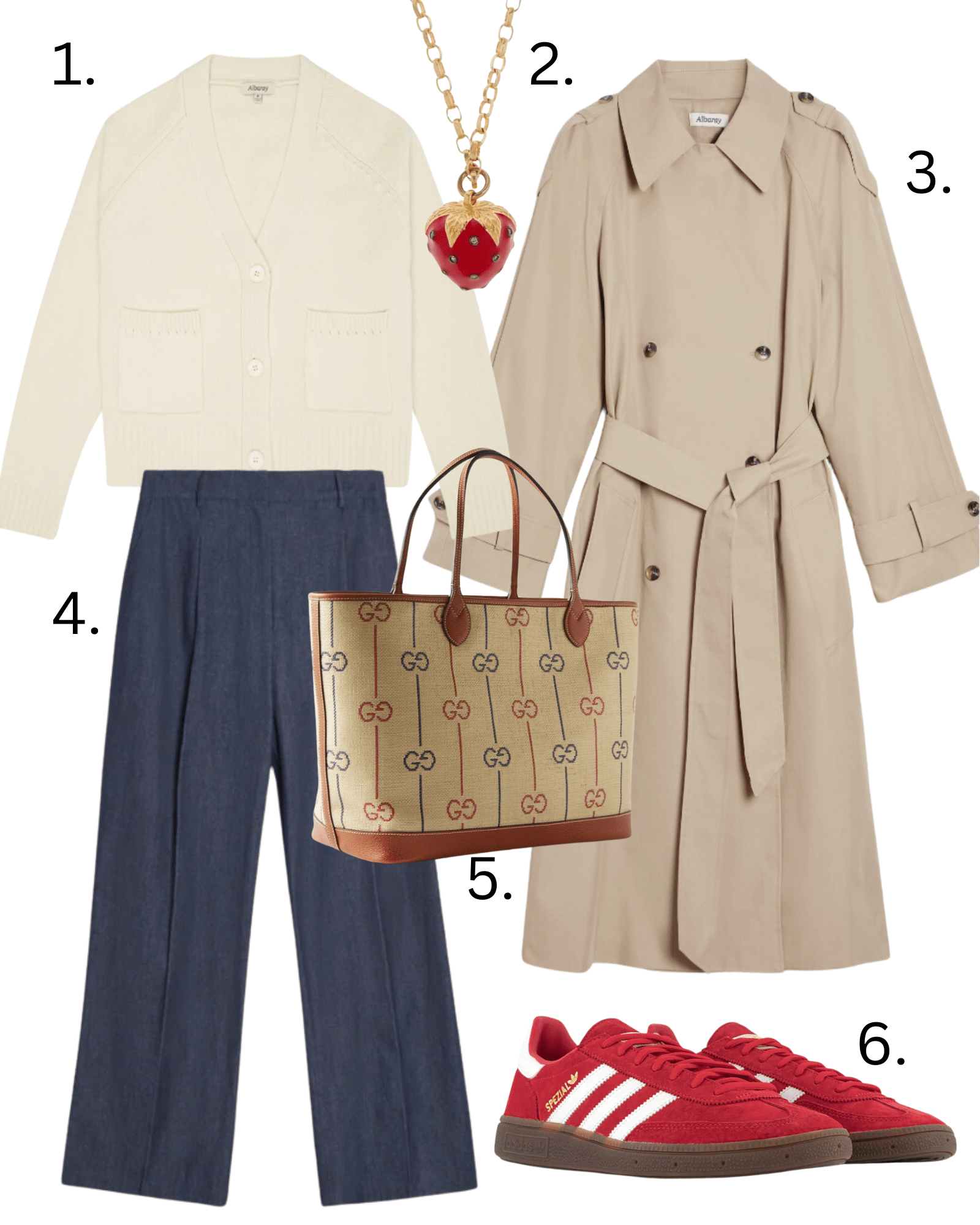 I’ve said it before and I will continue to say it, you cannot beat a good cardigan at this time of year. Wear now with a vest top or T‑shirt underneath, then wear later with a good coat over the top. I love this Albaray trench for autumn as well as for spring.
