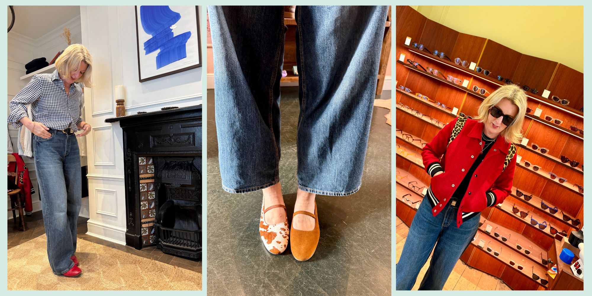 I couldn’t resist this gingham shirt from WNU, these cow print Mary Janes from Penelope Chilvers and a good try-on of glasses and sunglasses at Cubitts.
