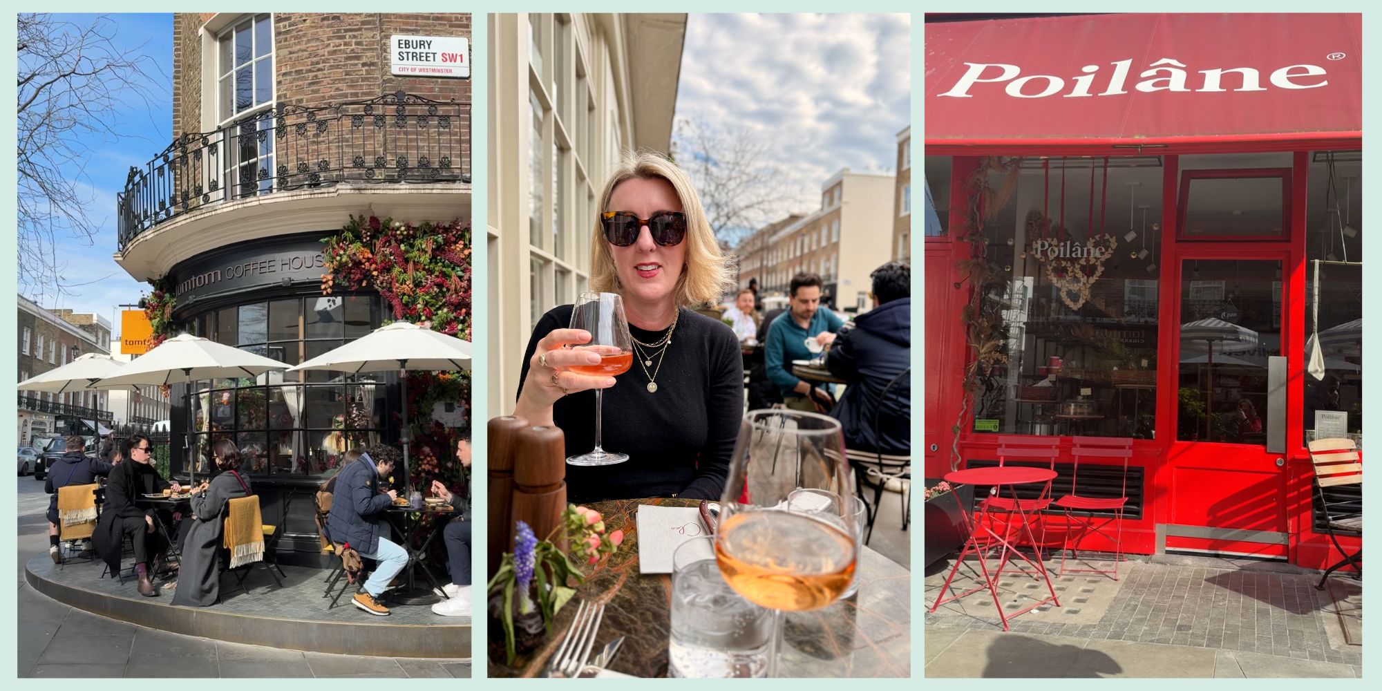 And whether you’re looking for a coffee, a cocktail, a spot of lunch or just a REALLY good loaf of sourdough bread, Elizabeth Street can provide you with all these. We had a coffee at Poilâne, an al fresco lunch at Cleo and a cheeky glass of something at the Thomas Cubitt pub. Yes, outside! In March! We were very lucky with the weather and, as we all know, you HAVE to make the most of the sun while it’s out.