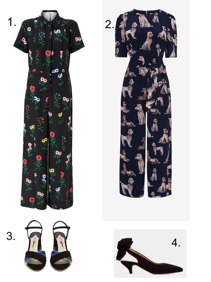 By ‘Party Jumpsuit’, I basically mean one a little bit smarter than your average boiler. These are all in ones that you could wear to a wedding. If I was going to a wedding soon I couldn’t think of something I’d like to wear more than a jumpsuit covered in Poodles! Not even joking, I love it. A nice wide-leg patterned jumpsuit would work a treat for any smart event. Sidebar, If you like the look of these Ganni Shoes but are short on cash, check out Office’s homage to them.