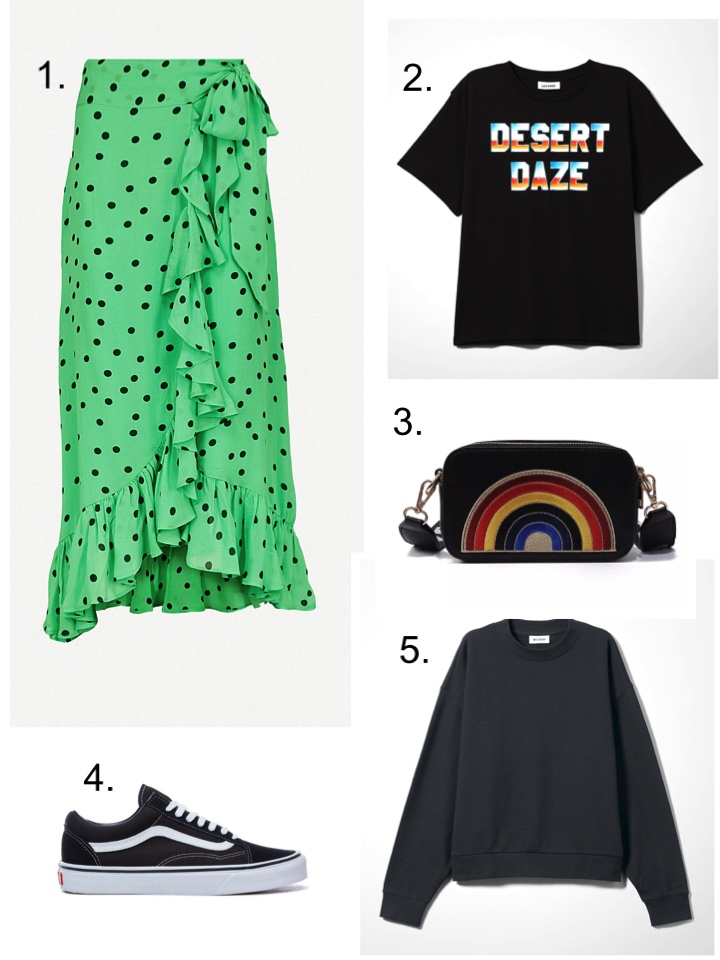 What I love about this dress is that I can wear it now with sandals and trainers, but in the winter I can add boots, a thick pair of tights and long-sleeved top underneath and create a whole new look. That’s the idea anyway. Watch this space! As I know we’re not all made of money, I’ve picked out my current favourite items from the new GANNI collection and will show you how you can wear them with what you already have in your wardrobe and how to pair with cheaper high-street items.