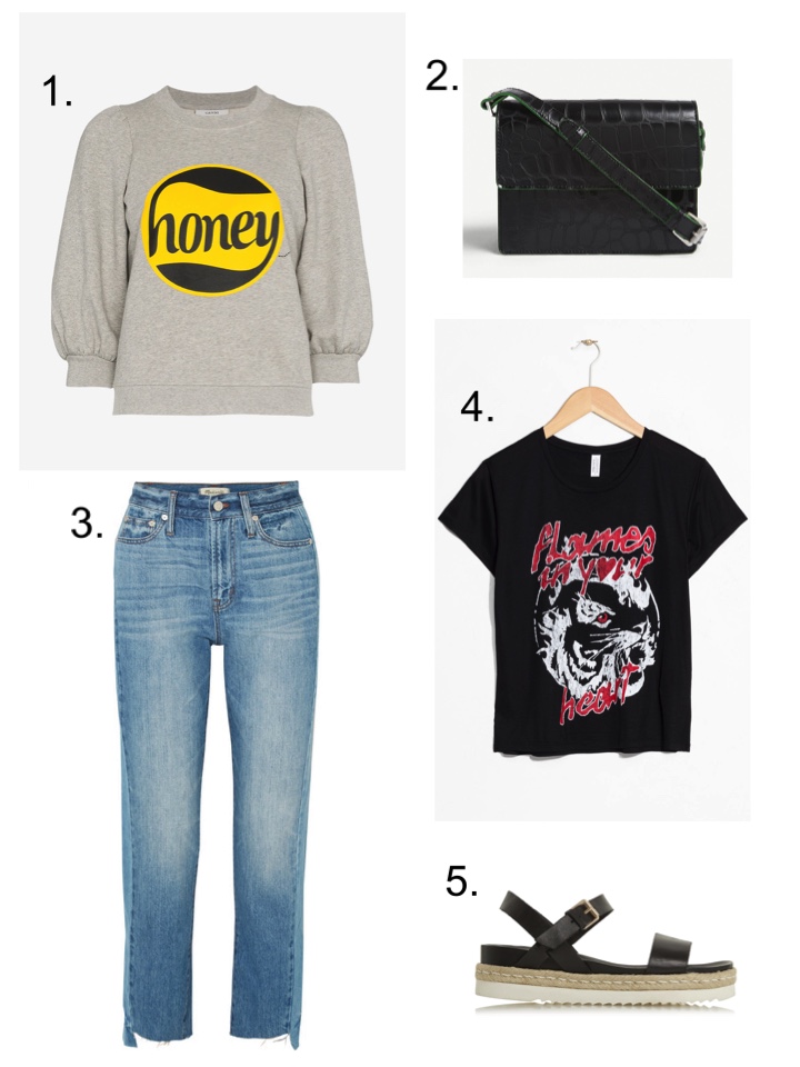 If prints are still just not your thing, then how about a simple sweatshirt? Although this sweatshirt isn’t exactly simple, it’s slightly fitted, with 3/4 puff sleeves. Perfect to pair with your high waisted style jeans. I have a ‘thing’ for grey marl sweatshirts with a logo. They draw me in like a moth to a flame for some reason! I’ve found some alternatives in the scrolling bar below if, you too, are in the Grey Marl Sweatshirt Appreciation Society.