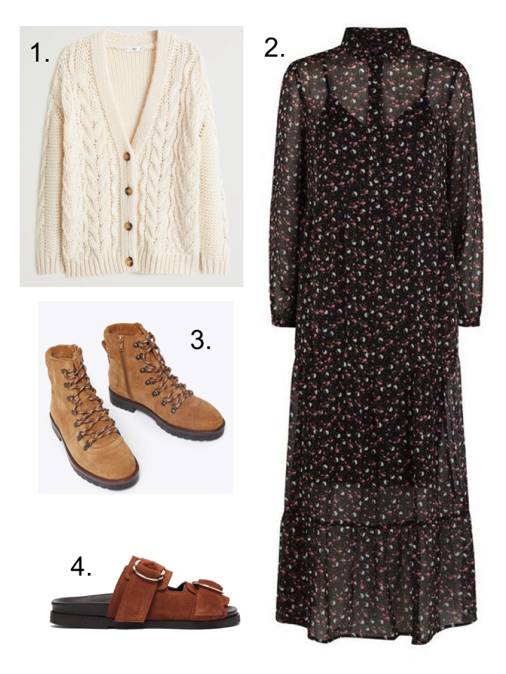 This is one of my go-to combos for early autumn, the classic floral midi dress and cardi is pretty fail-safe. For now, wear your sandals, and when it gets chillier, swap them for boots and ‘secret leggings’. For newer readers, ‘secret leggings’ are just any old leggings that you wear under midi and maxi dresses so they don’t show below the hem, thus giving you the extra heat you need, yet still giving the illusion that you are still braving a bare leg. I swear by this until at least early November.