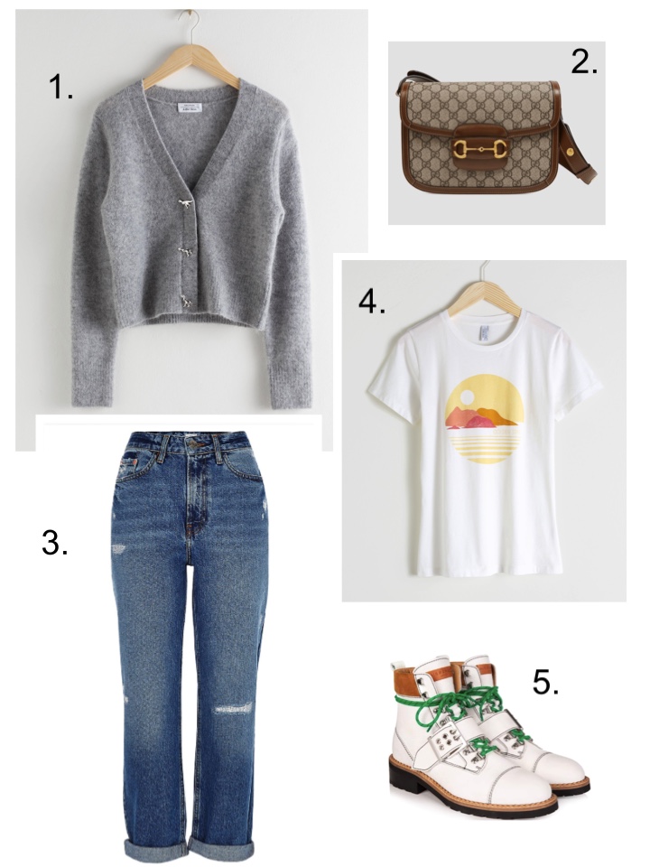 Now THIS is the outfit I most want out of all of this week’s finds. I missed out on this & Other Stories Cardigan last season, so I’m definitely going to order it this time. It’s the perfect soft grey colour that goes with everything, slightly cropped style and it has DINOSAUR buttons! I love it. I will pair with my River Island Jeans, a white T shirt and a fancy handbag.