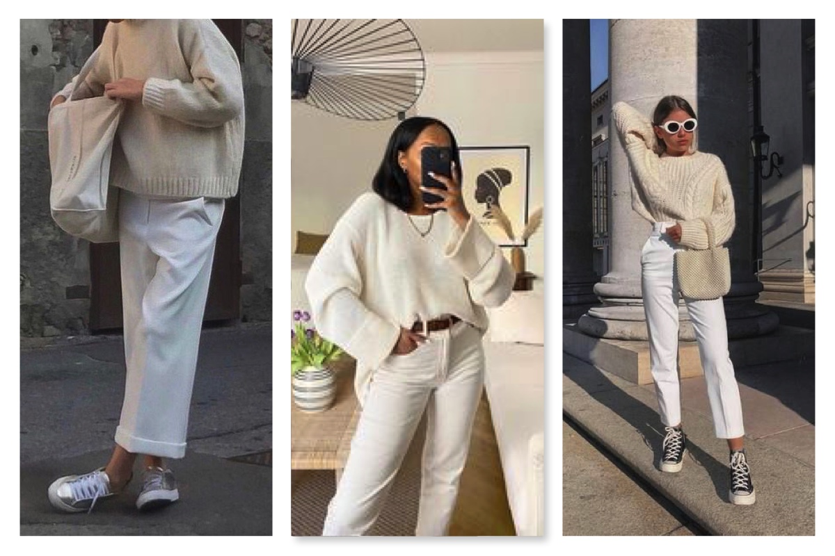 LIGHT SWEATER & WHITE JEANS