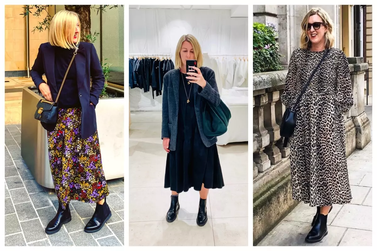 I bought these ones about 2 years ago and they actually didn’t take so long to break in, I think the leather is a little softer. They go with EVERYTHING. I particularly like them with patterned dresses as the fact the boots are so plain doesn’t detract from the prints on your clothes. I’m hoping that by the time I publish this post that this H&M dress isn’t out of stock. They have a few great versions of it and I have it on good authority that it’s excellent. Very Ganni for less than 1/4 of the price.