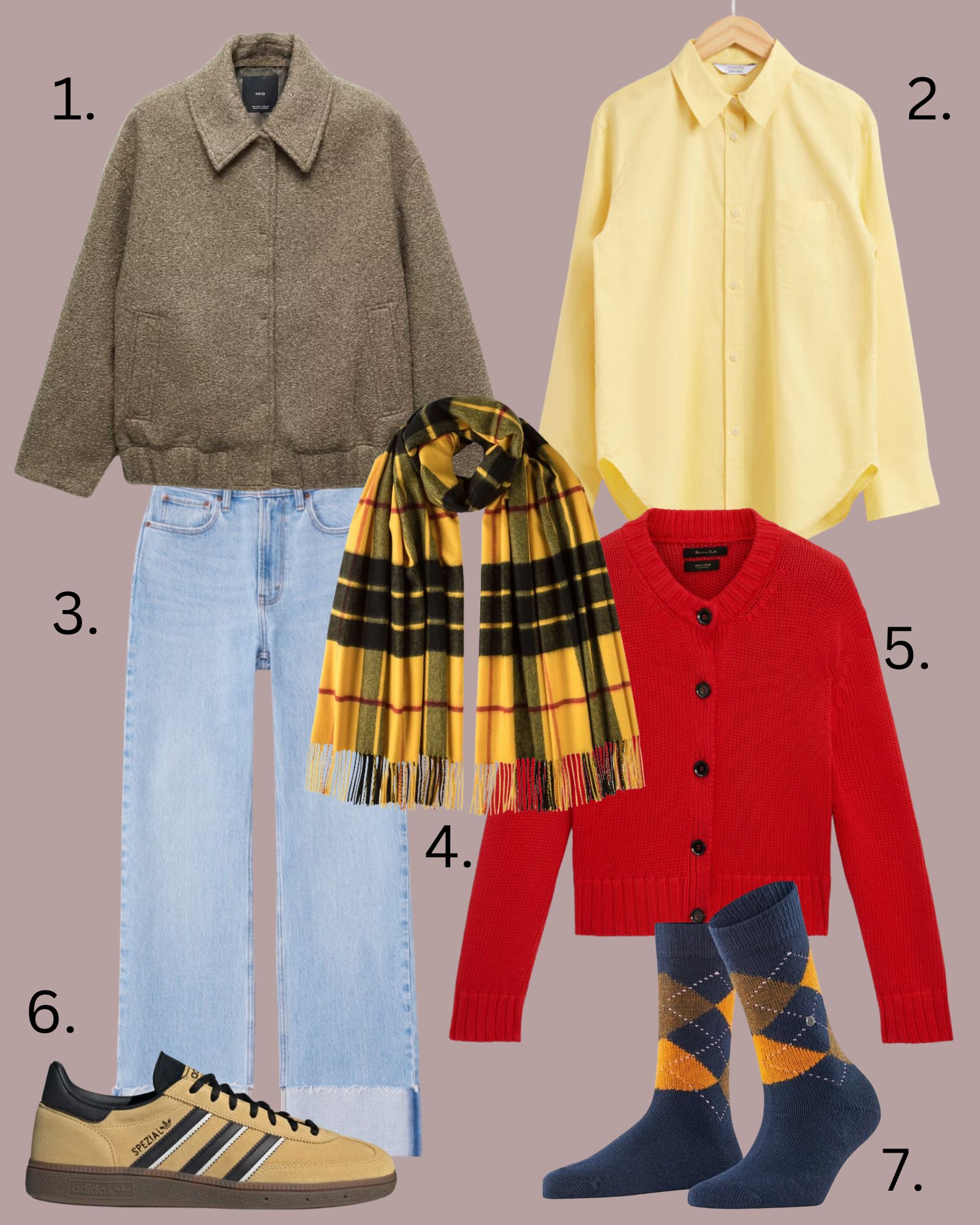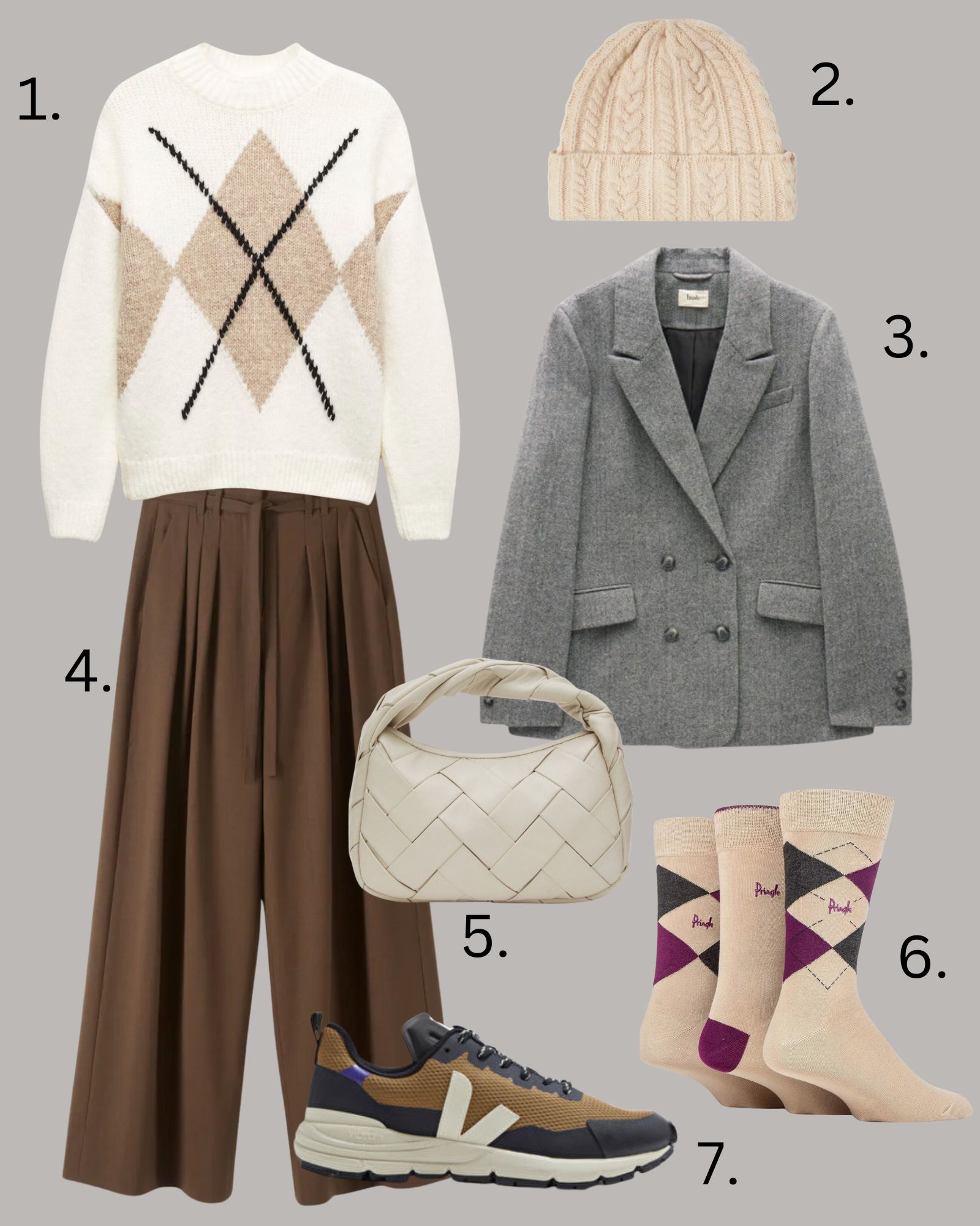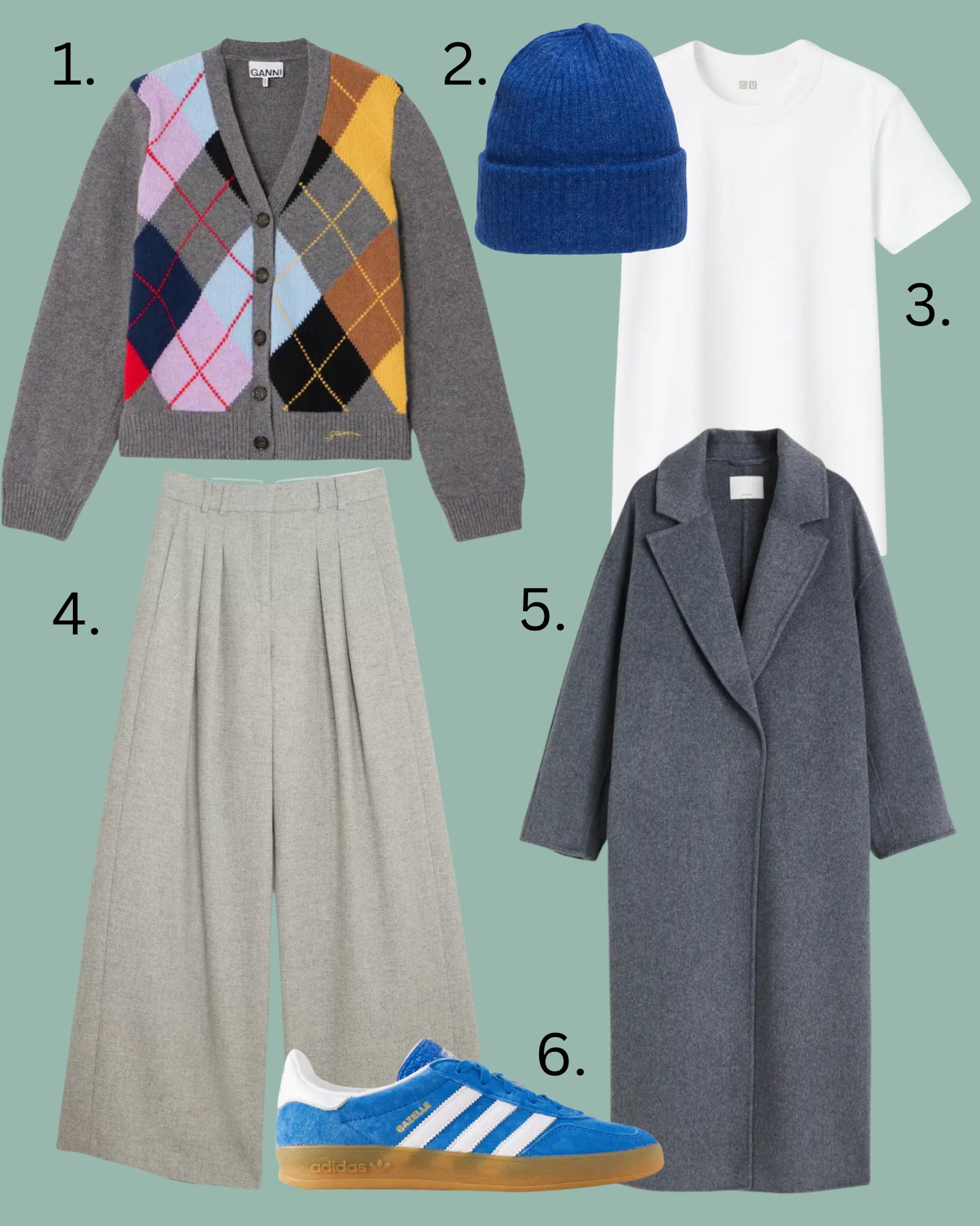 So what is EGC, exactly? Well, I’m saying it’s an ‘anything goes’ approach to dressing with a focus on things your grandpa used to wear. So we’re looking at a good, comfy cardi, a nice knit and some baggy trousers but with some random colours that maybe shouldn’t work together but actually do. I will caveat this right away by saying, yes, you can go down the vintage route very easily here. Check out Vinted and your local charity shop for preloved versions of these looks. Look out for good men’s blazers, wide-leg pinstripe trousers and quality argyle knits.
