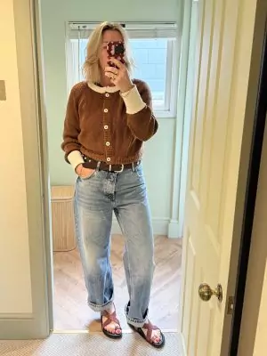 I also finally caved and ordered the baby Emerson tote bag that I’ve been featuring on the Sunday blog for months now. It’s the perfect sized bag for everyday use and you can pimp it up with all sorts of charms, chains and scarves to match any outfit. Another of my top picks this month are the Rylee chino trousers I am wearing below. Lightweight, without being too thin, barrel shaped, without being too OTT and the perfect crop length on me (I’m 5’7).