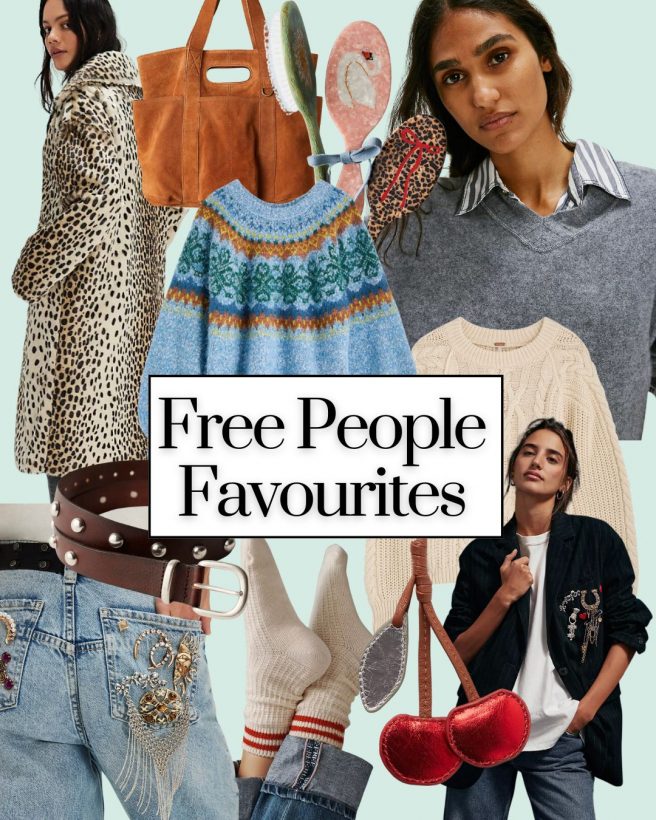 This post is sponsored by Free People. It contains some goodies for you and possibly some ideas for Christmas presents for others if you’re feeling generous. Of course you could use my time-honoured, Christmas gift-buying trick of ‘one for you and maybe one for me too’. Free People do a fine line in cool accessories that are perfect for gift giving. Standout items include their layered necklace, these excellent brooches for jazzing up a jacket, these cool triangle scarves and this little bag charm that’s just the cutest.