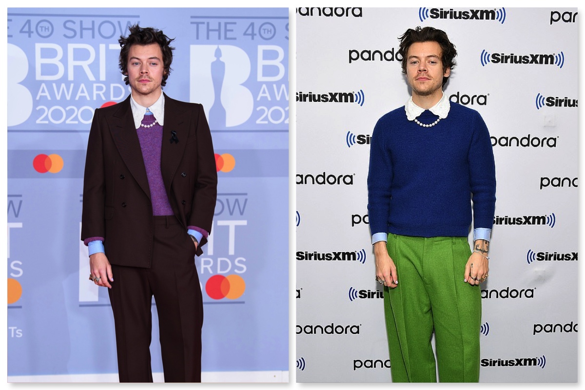 If I had a pound for everyone who sent me these 2 photos over the past few months, I’d probably be a millionaire, or I’d have 9 pounds, but you get the picture. Yes, these outfits do look like Harry had to borrow his nans wardrobe because he had an accident on the way over to her house, BUT I would totes wear them, and that’s kind of what this blog is about. A lovely frill collar blouse with a toasty knit and a baggy trouser? Yes please, that’s totally up my Strasse. Pearls optional.