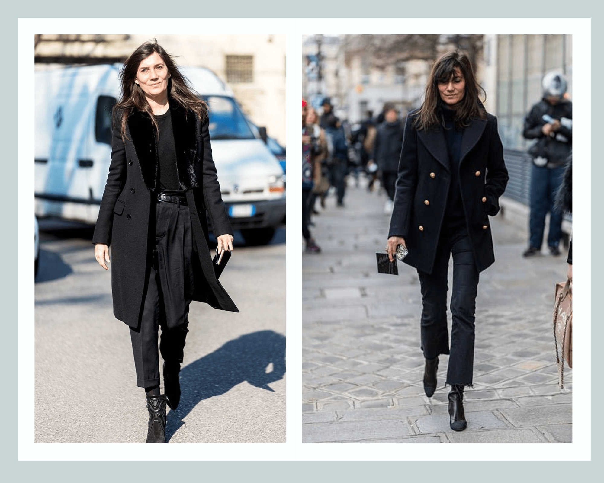 Emmanuelle Alt, for those who don’t know her, was (until recently) the editor of French Vogue and a stalwart of fashion week street style. Her look is less casual than Isabel Marant: she often favours tonal dressing, all black or all navy (or a mix of both, that works, and don’t let anyone tell you otherwise). I think all navy is just so chic. It’s also an easy one to recreate, as navy will go with most skin tones and is generally a bit more flattering than an all-black ensemble.