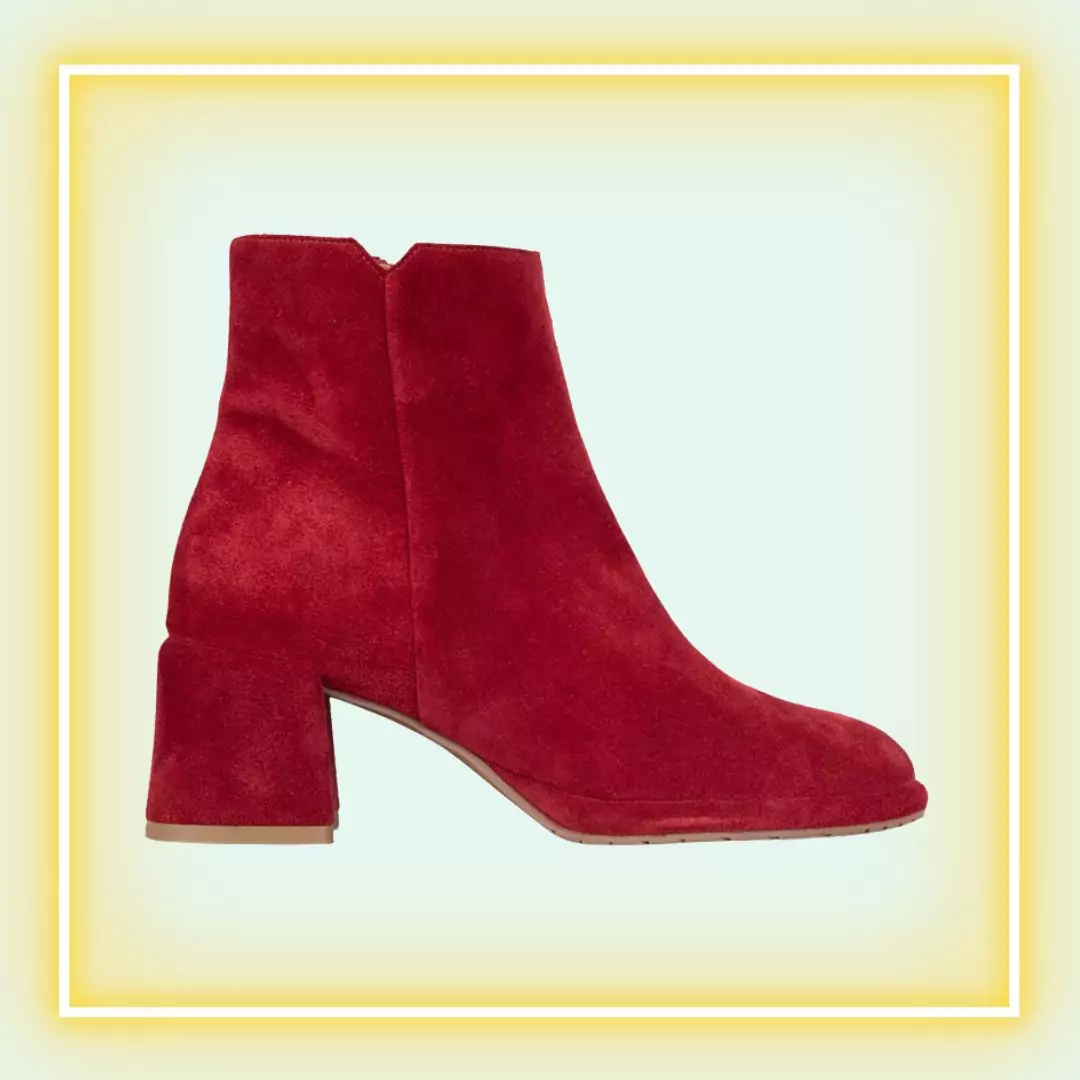 The Mona boots are ideal for everyday wear and transitional seasons. They feature a walkable-height low block heel and round toe, and are so comfortable that you could easily wear them all day. And oh! This new red suede colourway is quite something. Dress down with denim and navy to give them the maximum impact they deserve.