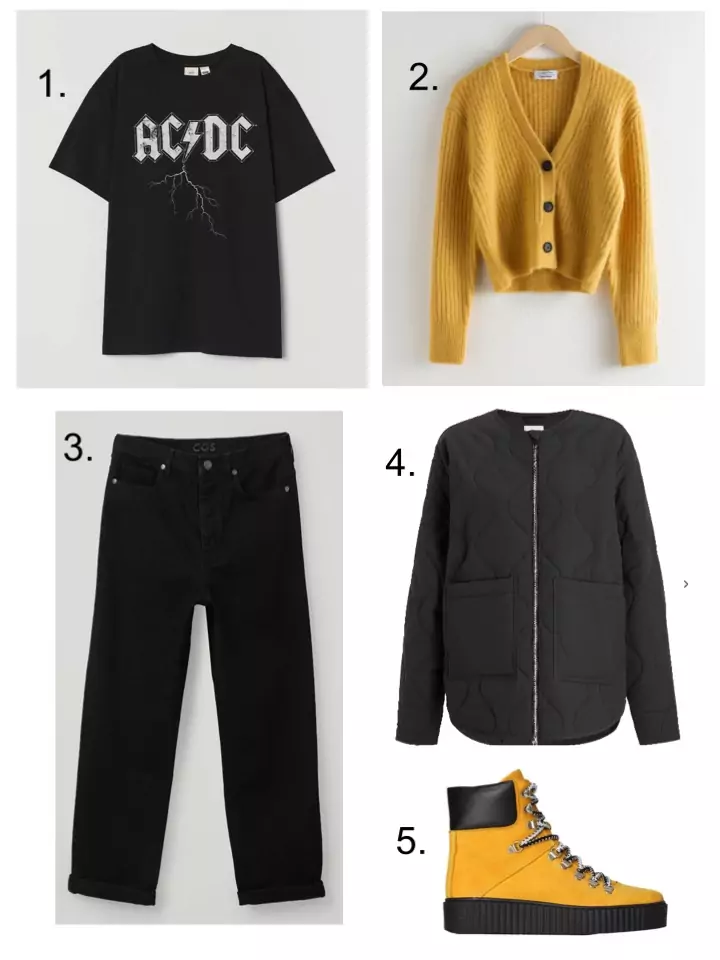 We all know by now that I love a good Cardigan. Maybe it’s an age thing. Maybe I like to pull an open cardigan together and cross my arms, looking wistfully into the middle distance so I feel like Barbara Hershey in Beaches. Minus the Lip Fillers, the beach house and Bette Midler as a best friend. Maybe I just like them because they are easy to take on and off when you get too hot. That’s probably more like it, but I prefer reason one. Try a yellow cardigan over an otherwise all black outfit. Use yellow accents on your accessories if you fancy a matchy matchy bit of cohesion. If yellow boots are a step too far, maybe try yellow laces in your BDMs.