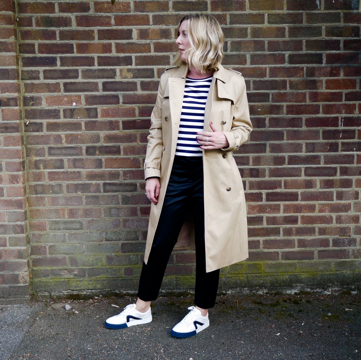 Firstly can we appreciate the trainers? They are very similar to the Stella McCartney pair I have but for a price WAY cheaper! I like to think this is a classic Parisian look. That’s a sweeping generalisation, I know that not all French people wear striped tops and trench coats. Add a pair of classic black tailored trousers, and you’ve got a perfectly easy outfit to take you anywhere.