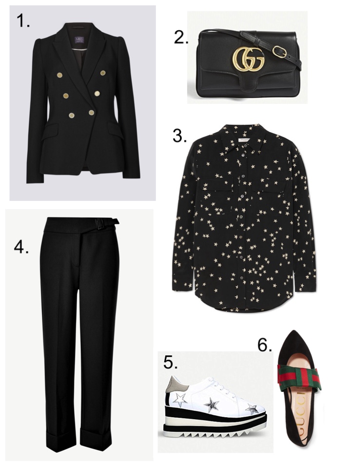 If dresses are just not your bag, or you’re going somewhere a bit more ‘businessy’, then my fail safe go-to outfit would be a ‘semi-suit’. Basically just a blazer and trousers the same colour. They don’t have to match completely and no-one will notice anyway. Plus it’s hard to find an actual suit where you like the jacket and the trousers the same. I always opt for a statement shoe and a silk shirt. The best silk shirts money can buy (IMO) are from Equipment and my statement shoe of choice is the Stella Elyse, but I realise they are not everyone’s taste. I like them because they make me taller and I can still walk in them. I tried these M&S trousers on the other day, very good if you’re in the market for a slightly wide leg cropped trouser.