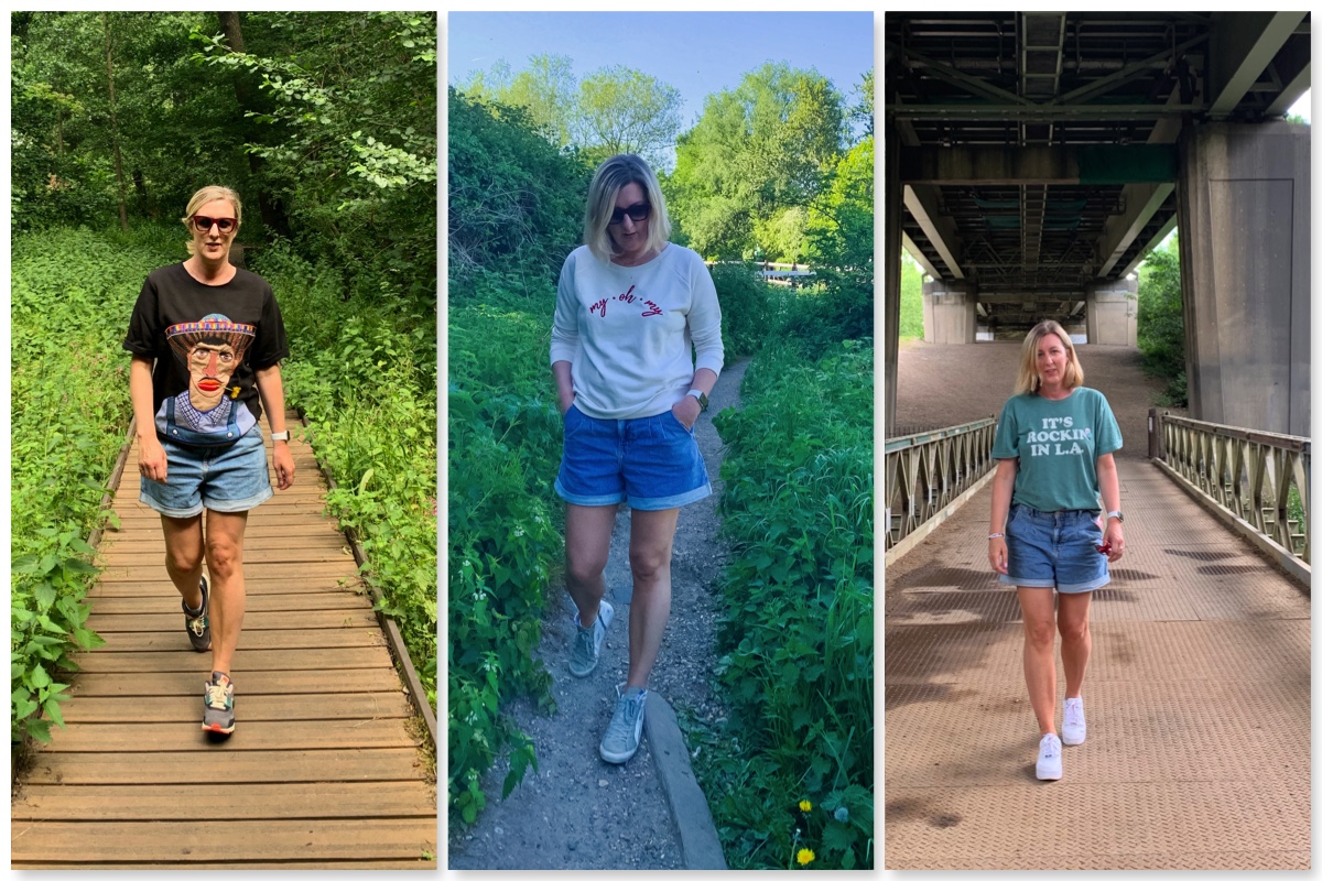 Before you say ‘But Kate, surely it’s a work out top’, I say to you, ‘No’, it’s definitely a lace bra, flesh coloured, so even more of double take the first time I saw her. But if that’s what she wants to do then fair play to her. When I go for my holiday walks I SHALL be wearing a top half. Probably my Newtone T Shirt and will add my Coach Barbra Sweatshirt if there’s a slight chill. My favourite walking trainers are New Balance. Check out the Trainer blog for all the other comfy trainers I recommend, and don’t forget your shorts, more about shorts here.