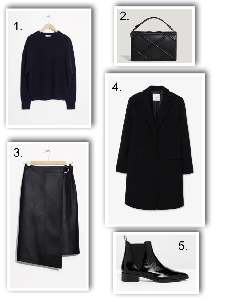 Everyone needs a classic Navy Jumper in their life, works with everything and can definitely be worn with black. I’ve said it before, do not be afraid to mix navy and black. it totally works. Also don’t be afraid of a leather skirt. It’s timeless and classy. I bought the & Other Stories boots for myself this week. Love them, totally comfortable even with that pointy toe. No breaking in needed, & Other Stories do great quality footwear.