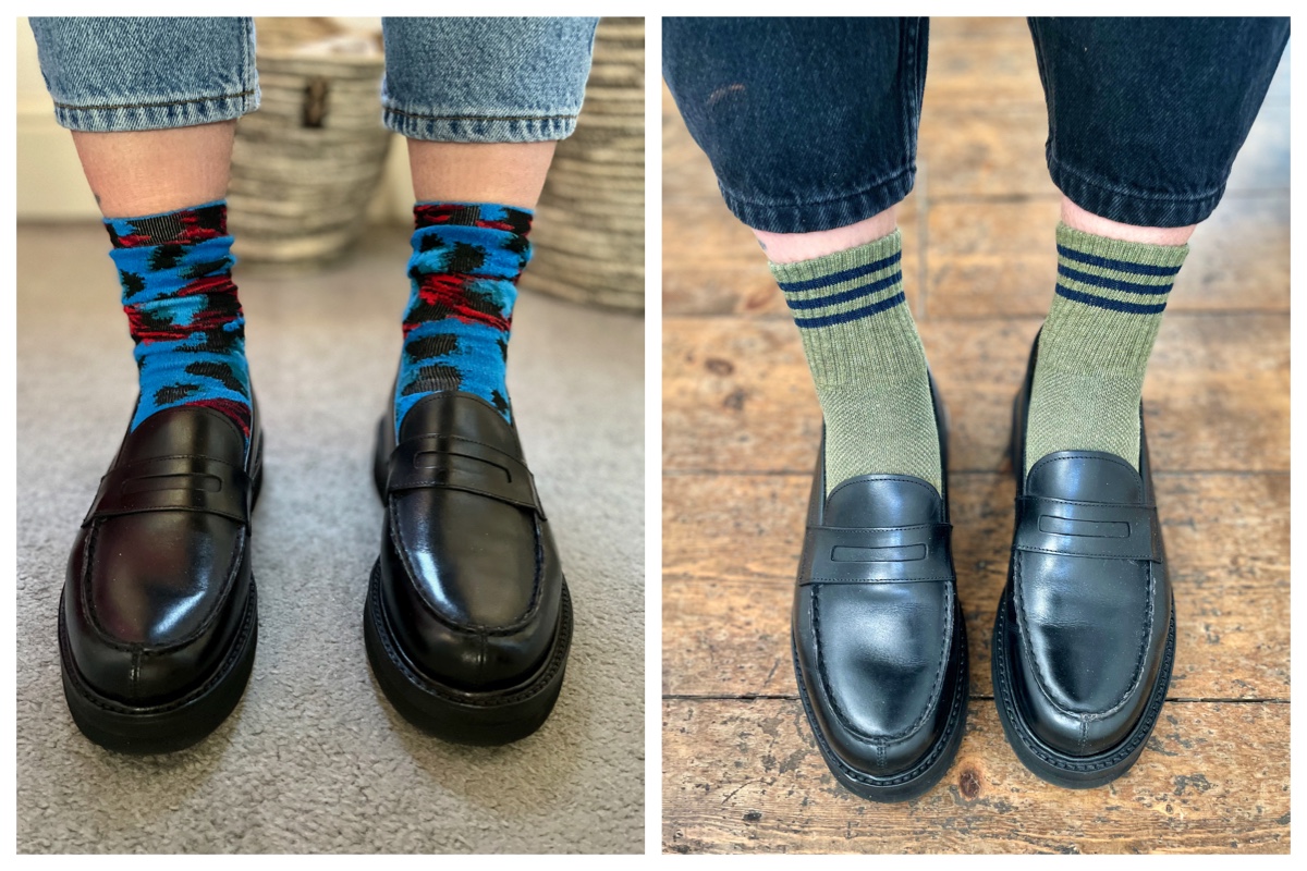 This is the topic that came up more than any other. Socks, it seems, are a big deal. Not that I’m surprised by this, I do love a good sock. When it comes to what socks to wear with what shoes, I don’t think there are any hard and fast rules. So many people ask me if you can wear socks with trainers. Of course you can! It has to be at least 20 degrees for me to consider a bare ankle, so socks are the way to go. I like to have a good selection of plain colours to tie in my socks with something else in my outfit, and colourful patterned ones are a great way to make life a bit more interesting. You really don’t need to stick with just navy and black. Often the men’s department has better colours than the ladies if you’re size 6 or above.