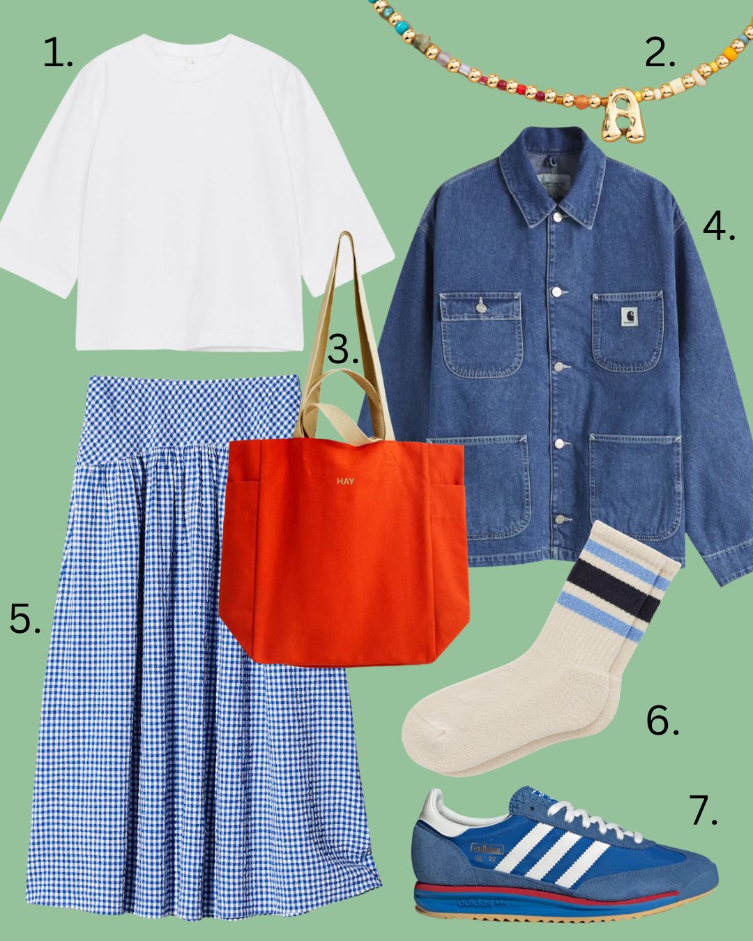 Gingham may also remind some of school uniform, but I love a bit of gingham in the summer. It brings back happy memories for me as I persuaded my mother to make me a matching top and midi skirt from purple gingham instead of wearing the regulation school pinafore-style summer dress. I’m not entirely sure how I got away with that look at middle school, but those were different times. We would also wear our crinkle faux-leather kitten heels and carry a can of Harmony hairspray with us at all times to keep those perms in check.